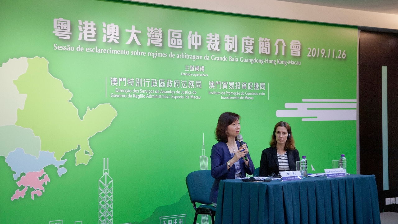 Com vista a implementar as “Linhas Gerais do Planeamento para o Desenvolvimento da Grande Baía Guangdong-Hong Kong-Macau” no que diz respeito à promoção do estabelecimento de mecanismos diversificados de resolução de conflitos baseados na negociação, construção e partilha conjunta, permitindo às empresas de Macau um melhor conhecimento sobre a Grande Baía e sobre o novo regime de arbitragem de Macau, a Direcção dos Serviços de Assuntos de Justiça (DSAJ) organizou em colaboração com o Instituto de Promoção do Comércio e do Investimento de Macau (IPIM), no dia 26 de Novembro, uma palestra subordinada ao tema “Sessão de esclarecimento sobre regimes de arbitragem da Grande Baía Guangdong-Hong Kong-Macau”, para a qual foram convidadas como oradoras a Vice-Presidente do Instituto de Arbitragem Internacional de Shenzhen, An Xin, e a Jurista da DSAJ, Emília da Conceição Cardoso dos Santos, para fazerem uma apresentação sobre a situação actual e o desenvolvimento do Instituto de Arbitragem Internacional de Shenzhen, bem como sobre a nova Lei da arbitragem de Macau, respectivamente.