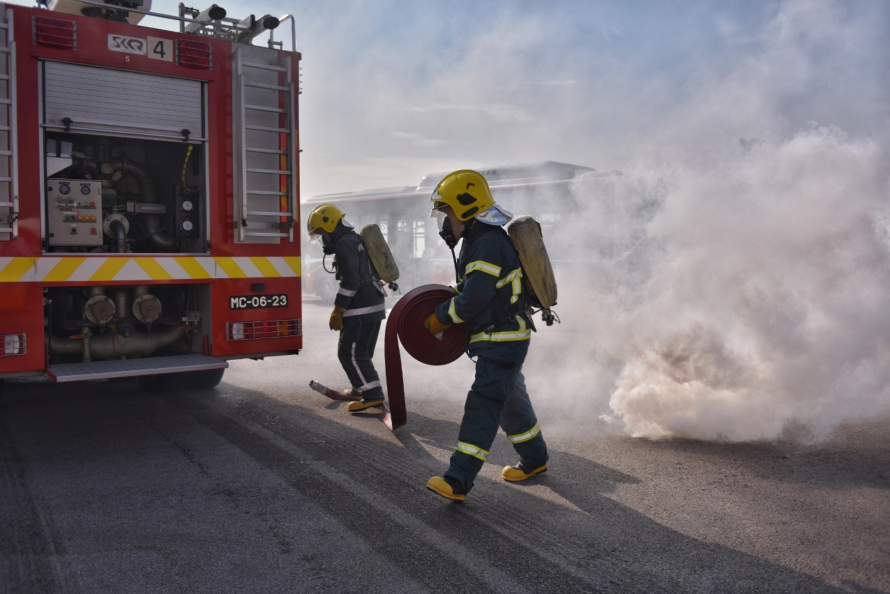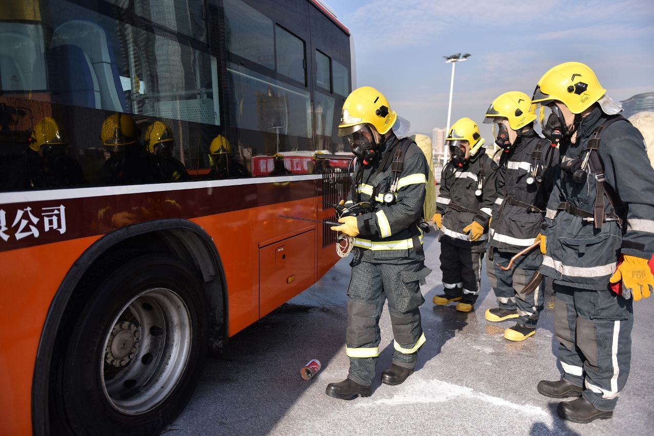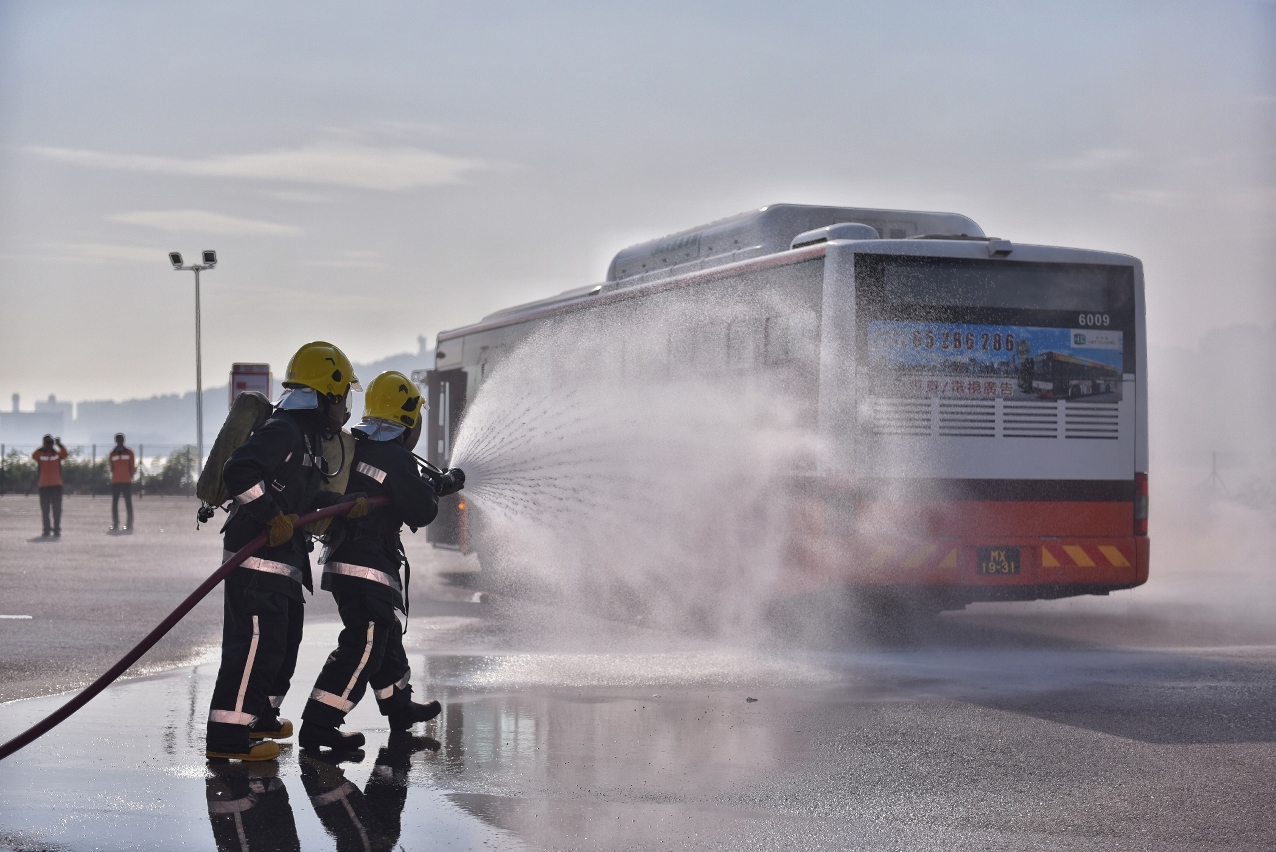 Esta Corporação realizou no dia 10 de Dezembro de 2019, um simulacro de incêndio e evacuação em conjunto com a Sociedade de Transportes Colectivos de Macau, S.A.R.L., com o intuito de testar as capacidades de resposta, coordenação e comunicação entre ambas as partes em caso de incidentes, cujo processo correu bem e cujos objectivos previstos foram atingidos. O exercício simulou avarias do autocarro a gás natural número 55 quando estava a circular, posteriormente, surgiu fumo, incendiou-se e efectuou o simulacro de evacuação na zona de estacionamento de autocarros da Avenida Dr. Sun Yat-Sen. Havia 9 passageiros e 1 condutor no autocarro, entre os quais 1 passageiro inalou fumo denso, cuja lesão era relativamente leve, os restantes 8 passageiros e o condutor realizaram a auto-evacuação. Depois de os funcionários da Sociedade de Transportes Colectivos de Macau, S.A.R.L. terem descoberto o incêndio, ligaram ao Corpo de Bombeiros (CB), procederam à evacuação e adoptaram uma série de medidas de emergência e contingência de acordo com o plano de contingência preestabelecido. Após a recepção da chamada, o CB enviou imediatamente 5 viaturas de emergência e 24 bombeiros ao local para realizarem os trabalhos de evacuação e extinção do fogo conforme o plano definido, o simulacro durou cerca de 35 minutos, cujo processo correu bem.