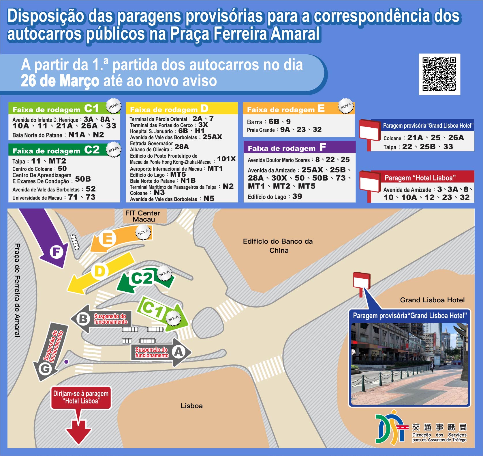 | A partir da primeira partida de autocarro em 26 de Março até a data a anunciar oportunamente |