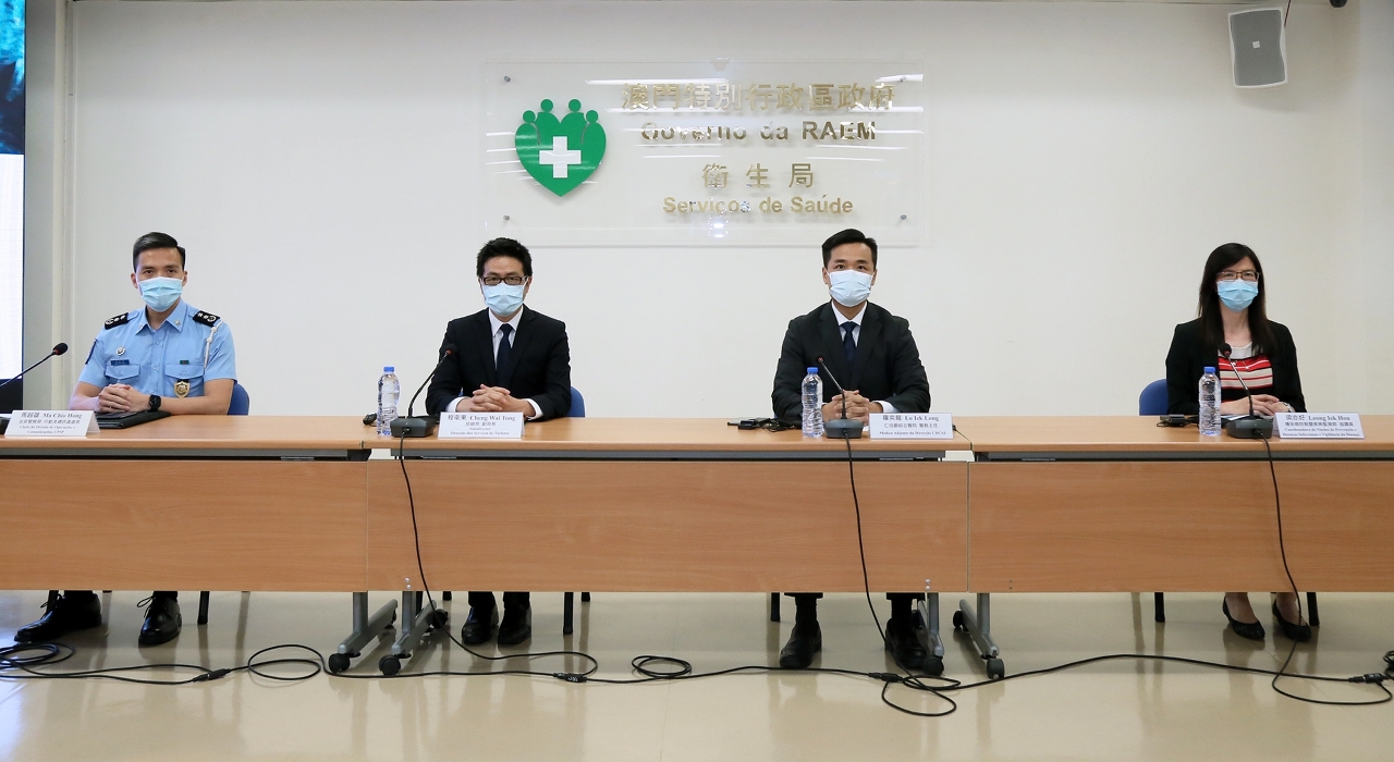 Estiveram presentes na conferência de imprensa o Subdirector da Direcção dos Serviços de Turismo, Dr. Cheng Wai Tong, o Médico-Adjunto da Direcção do CHCSJ, Dr. Lo Iek Long, a Chefe do Departamento de Licenciamento e Inspecção da Direcção dos Serviços de Turismo, Dr.ª Inês Chan, o Chefe da Divisão de Operações e Comunicações do Corpo de Polícia de Segurança Pública, Dr. Ma Chio Hong, e a Coordenadora do Núcleo de Prevenção de Doenças Infecciosas e Vigilância de Doença do Centro de Prevenção e Controlo da Doença, Dr.ª Leong Iek Hou.
