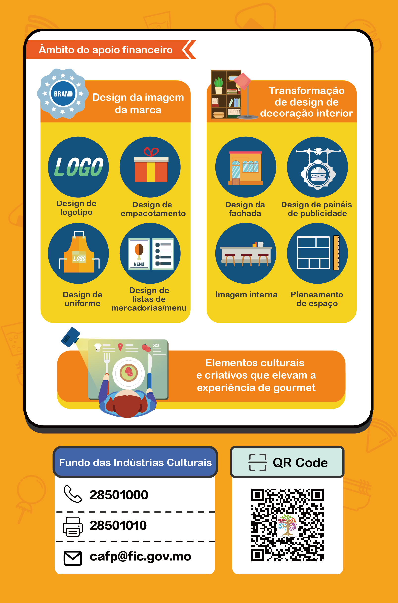 O Fundo das Indústrias Culturais (FIC) irá receber as candidaturas ao 3.o “Programa Específico de Apoio Financeiro para a Criatividade Cultural nos Bairros Comunitários”, no período de 26 de Junho a 25 de Agosto, destinado a lojas típicas de gastronomia em bairros comunitários.
