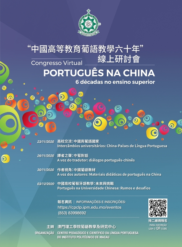 Há exactos 60 anos, mais precisamente em 1960, iniciou-se o primeiro curso conferente de grau em língua portuguesa em instituições de ensino superior chinesas. Para fazer um balanço do desenvolvimento do ensino de português na China, bem como promover a construção da Base de Formação de Quadros Bilingues em Chinês e Português, fazer valer as vantagens de Macau como Plataforma entre a China e os Países de Língua Portuguesa e apoiar o aperfeiçoamento do ensino e investigação do Português na China, o Centro Pedagógico e Científico da Língua Portuguesa (CPCLP) do Instituto Politécnico de Macau (IPM) organizará, entre os dias 23 de Novembro e 3 de Dezembro, o Congresso Virtual “Português na China: 6 décadas no Ensino Superior”, para o qual se convidam os estudiosos chineses e lusófonos, professores de português de instituições de ensino superior, tradutores chinês-português e todos os demais interessados.