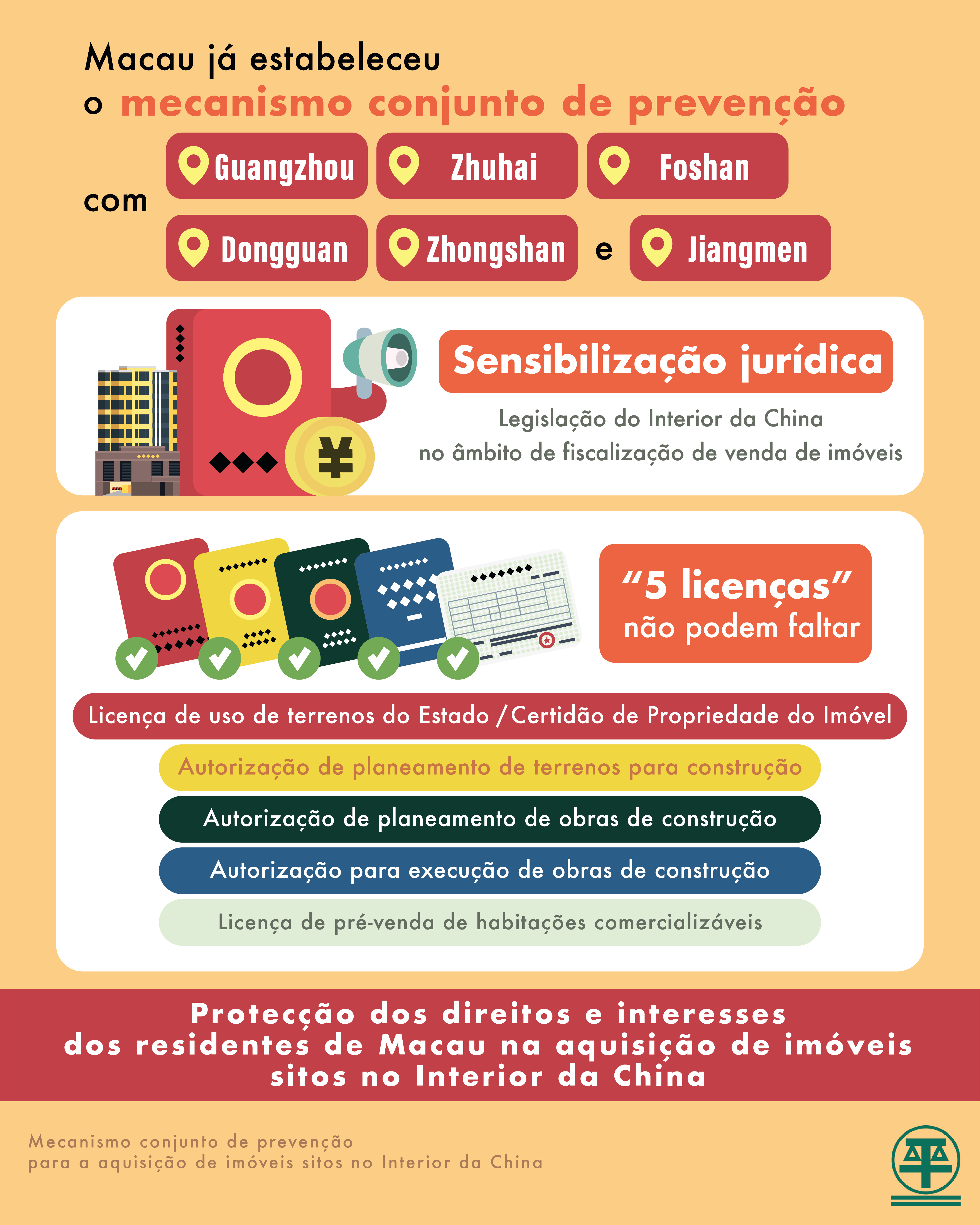 Macau estabeleceu o “mecanismo conjunto de prevenção” com Guangzhou, Zhuhai, Foshan, Dongguan, Jiangmen e Zhongshan, cidades integrantes da Grande Baía e agora encontra-se em contacto dinâmico com as restantes 3 cidades, ou seja, Shenzhen, Huizhou e Zhaoqing para a adesão ao mecanismo. Prevê-se que o mecanismo seja alargado para toda a Grande Baía nos primeiros seis meses deste ano, no sentido de dar mais um passo no reforço da protecção dos residentes de Macau na aquisição de imóveis sitos na Grande Baía.