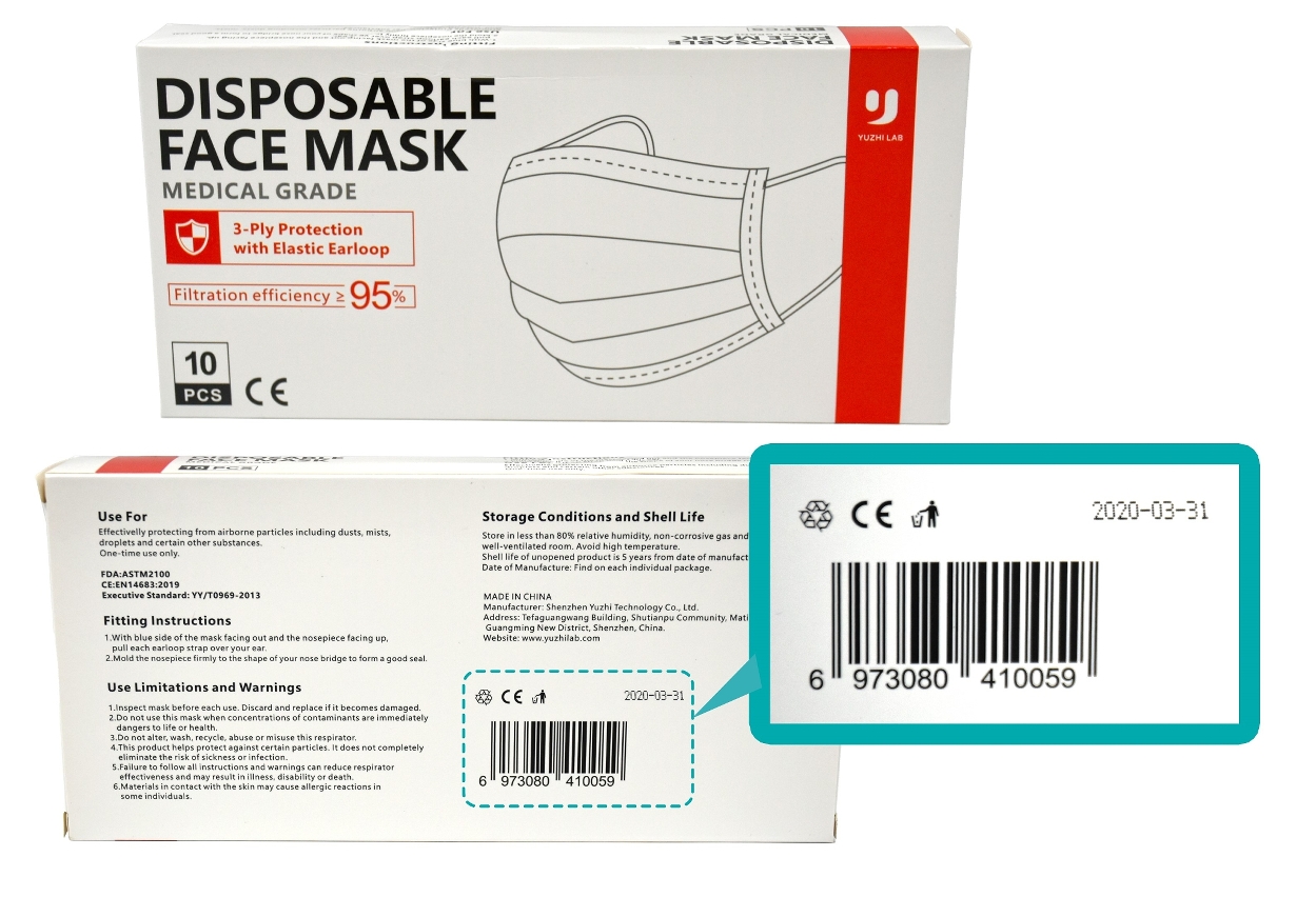 - “YUZHI LAB” DISPOSABLE FACE MASK MEDICAL GRADE (data de produção: 31/03/2020)