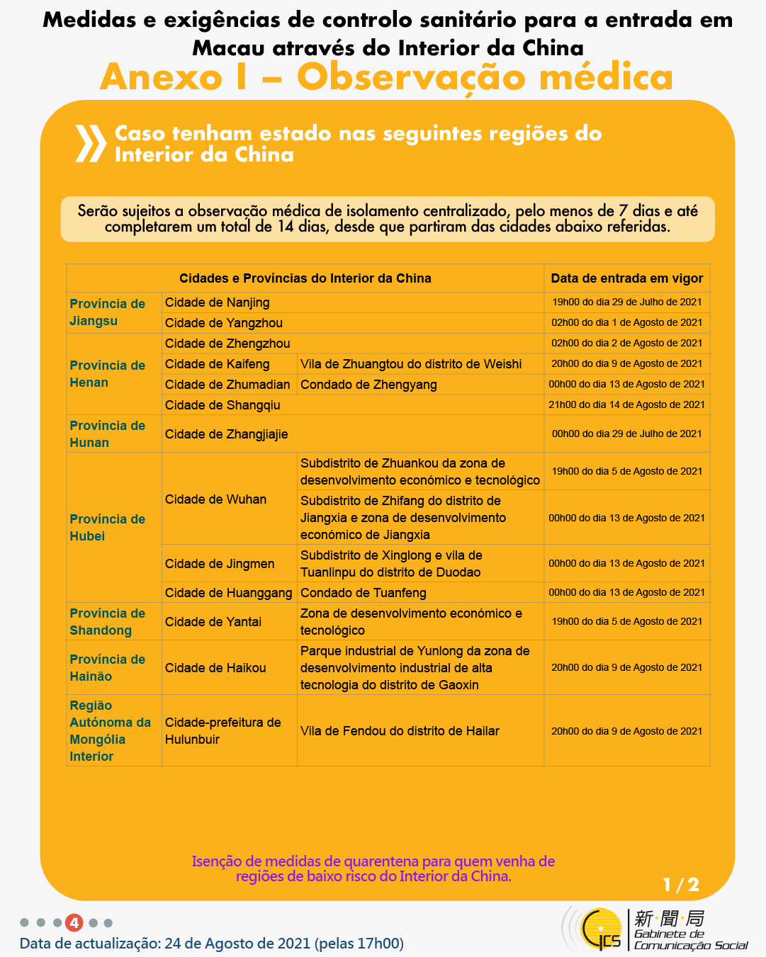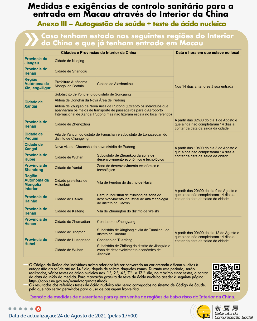 (Infografia)Medidas e exigências de controlo sanitário para a entrada em Macau de indivíduos de diferentes identidades, actualizadas no dia 24 de Agosto de 2021