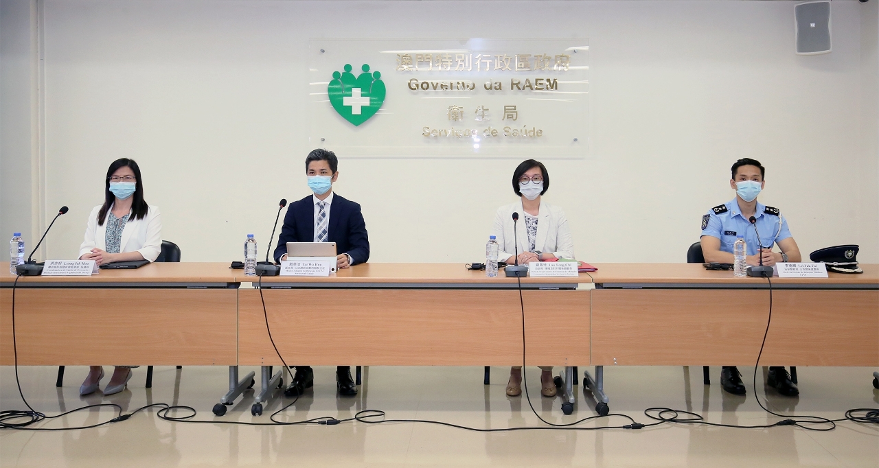 Estiveram presentes na conferência de imprensa: O Médico-Adjunto da Direcção do Centro Hospitalar Conde de São Januário, Dr. Tai Wa Hou, a Chefe do Departamento de Comunicação e Relações Externas da DST, Dr.ª Lau Fong Chi, o Chefe da Divisão de Relações Públicas do Corpo de PSP, Dr. Lei Tak Fai, e a Coordenadora do Núcleo de Prevenção de Doenças Infecciosas e Vigilância de Doença do Centro de Prevenção e Controlo da Doença dos Serviços de Saúde, Dr.ª Leong Iek Hou.