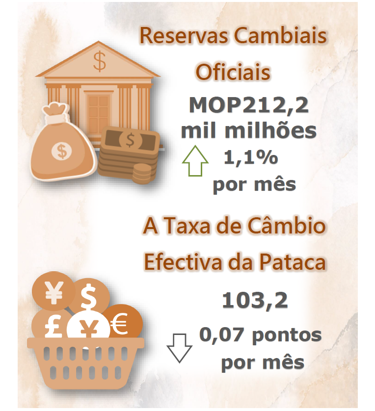 A taxa de câmbio efectiva da pataca, ponderada pelas suas quotas do comércio, foi de 103,2 em Agosto de 2021, registaram decrescimentos de 0,07 pontos e 2,48 pontos, respectivamente, sobre os dados do mês anterior e relativos a Agosto de 2020, implicando que globalmente, a pataca caiu face às moedas dos principais parceiros comerciais de Macau.