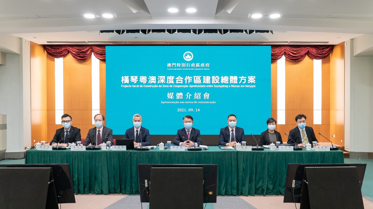 Teve lugar no dia 14 de Setembro, na Sala Polivalente da Sede do Governo, a segunda sessão de apresentação à imprensa sobre o Projecto Geral de Construção da Zona de Cooperação Aprofundada entre Guangdong e Macau em Hengqin, na qual o Secretário para a Economia e Finanças, acompanhado pelos dirigentes dos serviços públicos da sua tutela, fez uma apresentação sobre o referido projecto, na parte referente às áreas da economia e finanças.