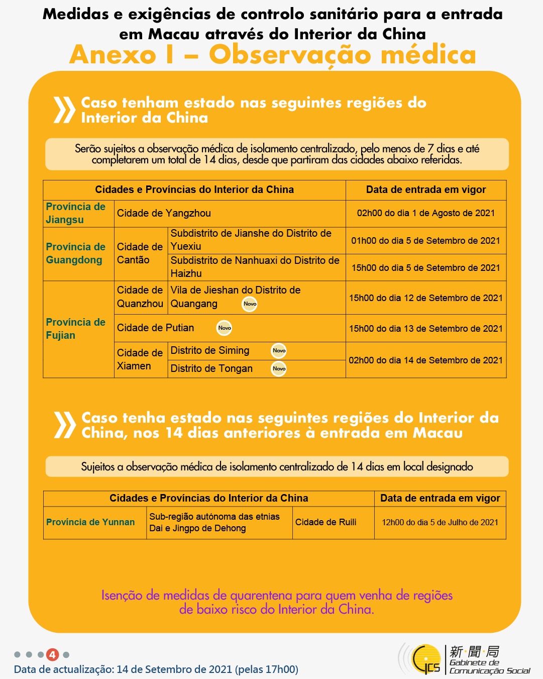 (Infografia)Medidas e exigências de controlo sanitário para a entrada em Macau de indivíduos de diferentes identidades, actualizadas no dia 14 de Setembro de 2021