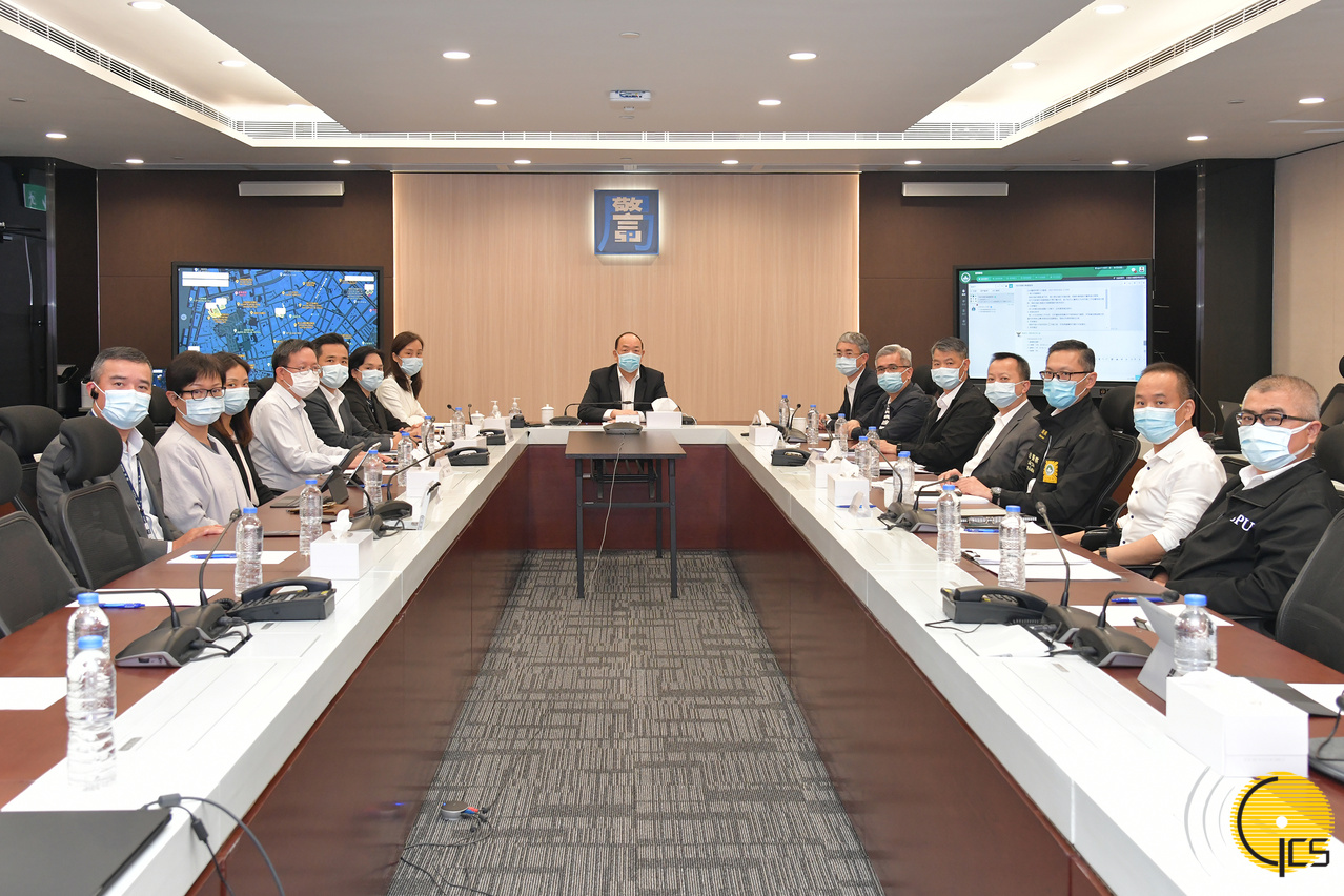 Participaram ainda na reunião por videoconferência, o secretário para a Administração e Justiça, André Cheong, o secretário para a Segurança, Wong Sio Chak, a secretária para os Assuntos Sociais e Cultura, Elsie Ao Ieong, o comandante-geral dos Serviços de Polícia Unitários, Leong Man Cheong, o director-geral dos Serviços de Alfândega, Vong Man Chong, entre outros.