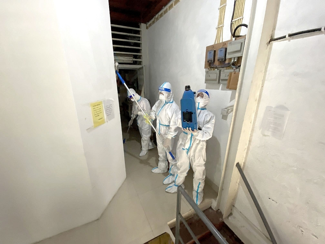 Em resposta à nova situação de infecção pela Covid-19 e para colaborar com os trabalhos de prevenção e controlo, o IAM coordenou, de imediato, com a Companhia de Sistemas de Resíduos, Lda. e adjudicatários de limpeza no sentido de destacar mais pessoal para proceder, no dia 28 de Setembro, a trabalhos de limpeza e desinfecção de grande escala em espaços comuns do edifício onde se verificou o 68.º caso confirmado, bem como nas ruas envolventes, de modo a minimizar as condições de propagação da epidemia.