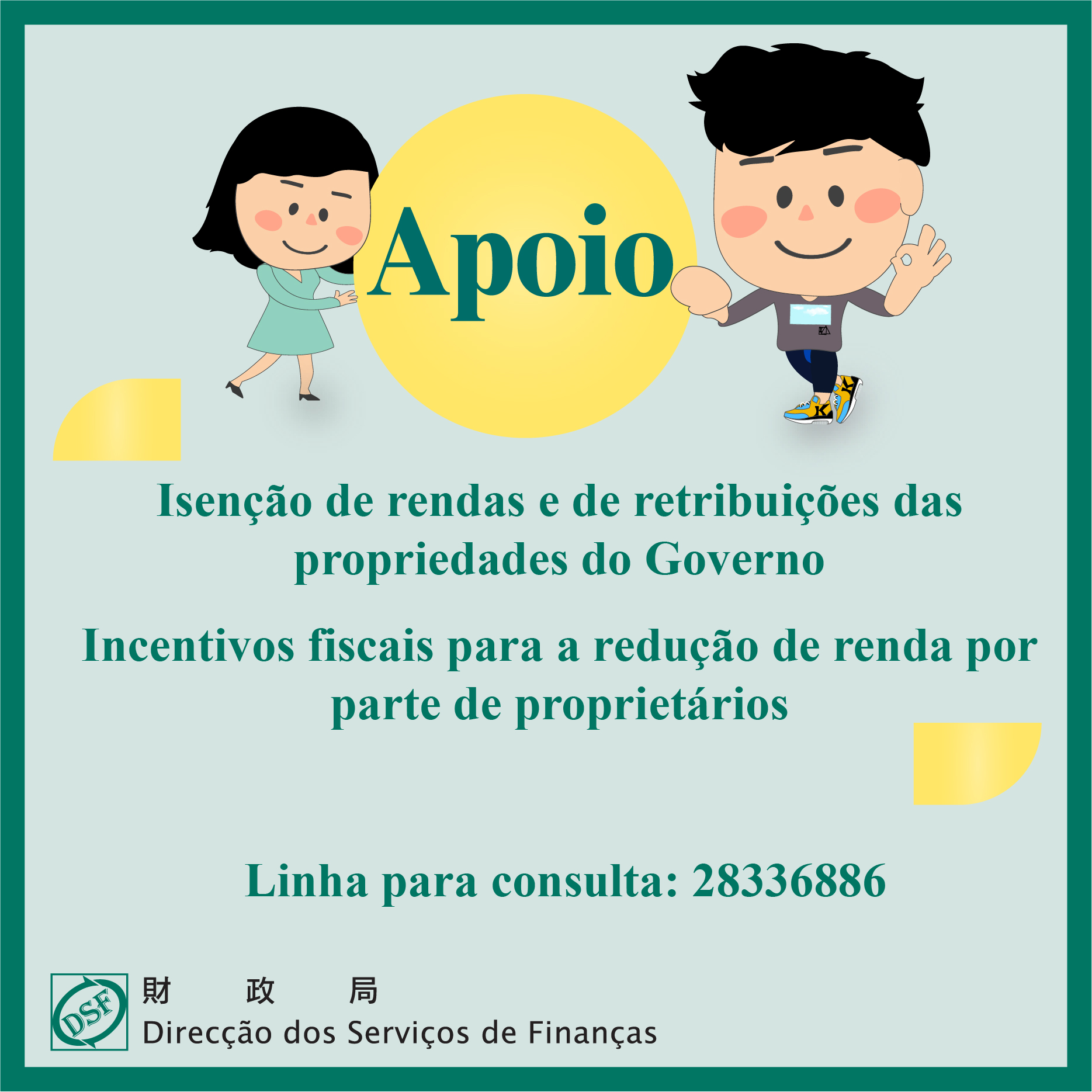 Para os cidadãos que se queiram informar sobre a isenção de renda e de retribuições de propriedades do Governo e sobre os incentivos de redução de renda por parte do proprietário com as medidas fiscais, podem telefonar para as Informações Fiscais através da linha aberta: 28336886.