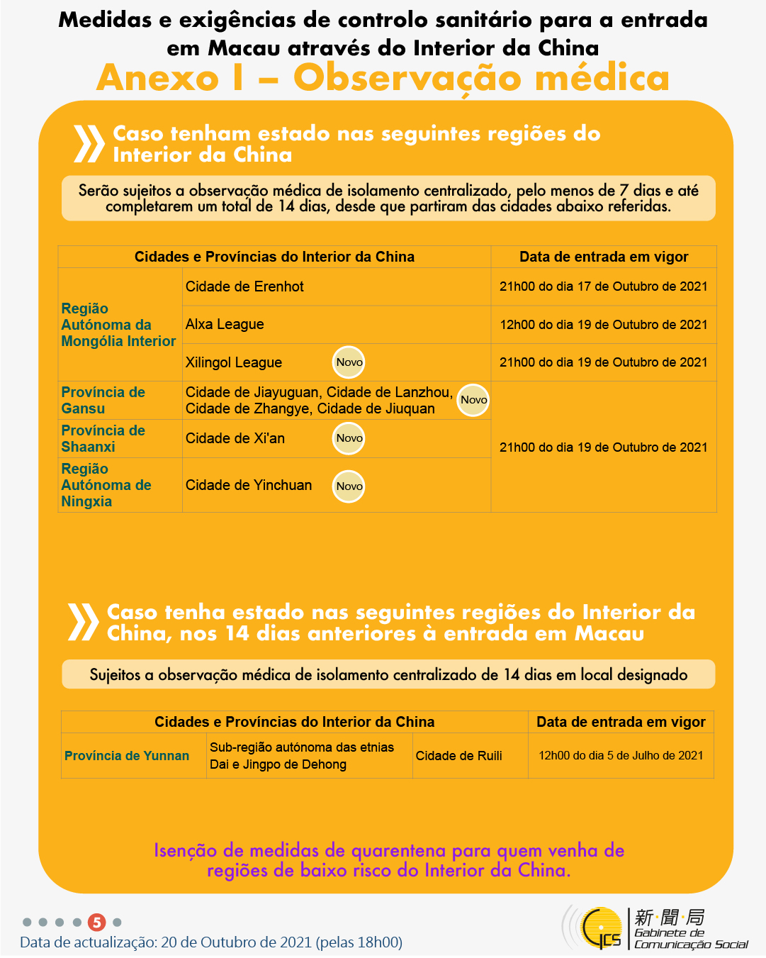 (Infografia)Medidas e exigências de controlo sanitário para a entrada em Macau de indivíduos de diferentes identidades, actualizadas no dia 20 de Outubro de 2021