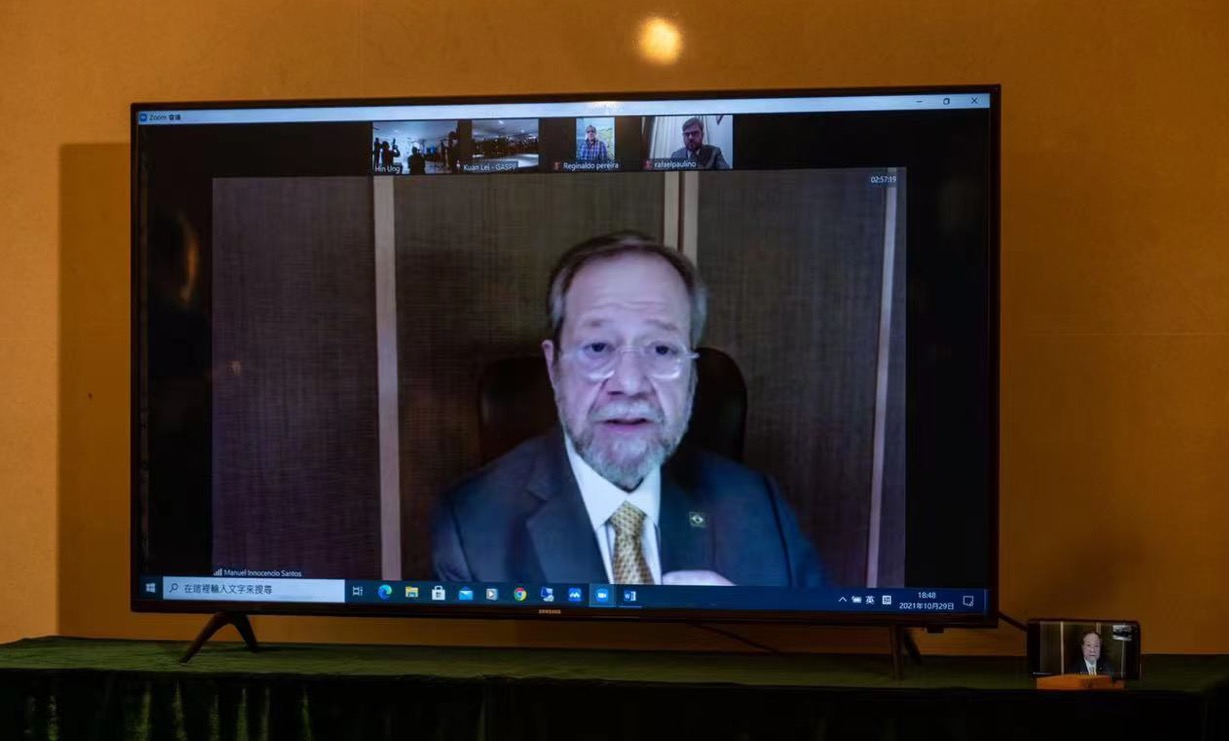 Na sua intervenção, o Secretário-Geral Adjunto do Secretariado Permanente do Fórum de Macau, (indicado pela RAEM), Dr. Casimiro de Jesus Pinto, refere que vivemos, infelizmente, ao longo de quase dois anos este drama pungente da crise pandémica global com as suas nefastas consequências económicas e sociais. Ainda assim, a especial resiliência tanto da China como dos outros países membros do Fórum de Macau sublinha quanto o comércio multilateral é elemento fundamental de recuperação da economia mundial e quanto entre as relações comerciais são decisivas cooperações e iniciativas culturais comuns. Serve esta exposição precisamente para revisitar a oceânica diferença e profunda dignidade da grande cultura do Brasil que se estende das florestas profundas da Amazónia ou do ecológico Pantanal às gigantescas metrópoles como São Paulo, Rio de Janeiro, Brasília ou Belo Horizonte.