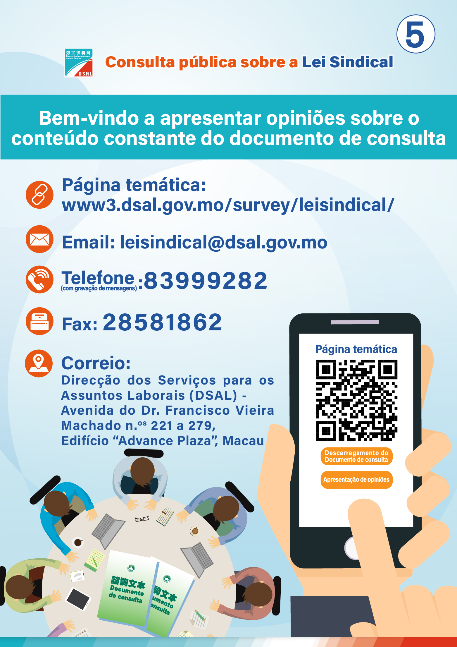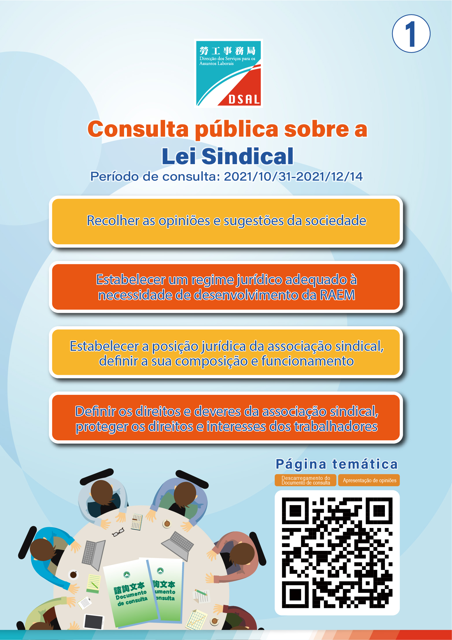 O Documento de consulta da “Lei Sindical” foi carregado na página temática da Direcção dos Serviços para os Assuntos Laborais (DSAL).