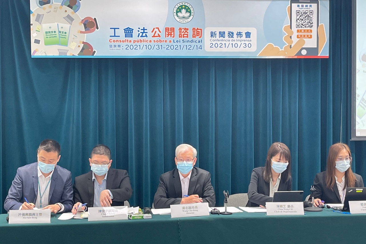Hoje (dia 30) o Governo da Região Administrativa Especial de Macau (doravante designada por RAEM) realizou uma conferência de imprensa e anunciou que irá realizar a consulta pública sobre a Lei Sindical por um período de 45 dias, entre os dias 31 de Outubro e 14 de Dezembro, e nesse período da consulta realizará quatro sessões de consulta para ouvir as opiniões do público.