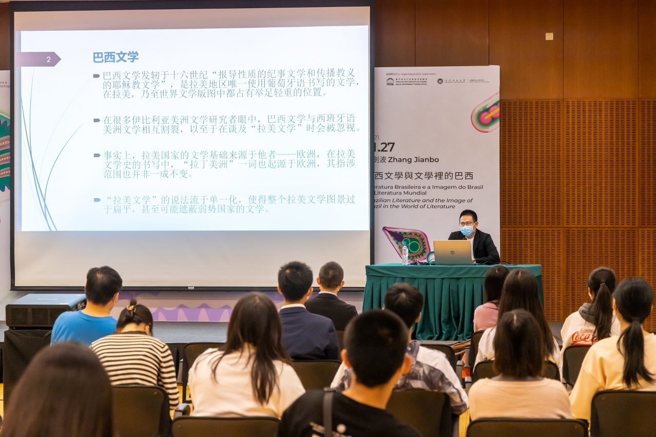 Organizada em conjunto pelo Instituto Cultural (IC), pelo Instituto de Investigação Social e Cultural da Universidade de Ciência e Tecnologia de Macau (MUST), a segunda sessão da Série de Palestras Culturais no âmbito de “Uma Faixa, Uma Rota” – Samba e Dança, intitulada Literatura Brasileira e a Imagem do Brasil na Literatura Mundial foi presidida pelo Professor Auxiliar do Departamento de Português da Faculdade de Letras da Universidade de Macau, Zhang Jianbo, no dia 27 de Novembro, na Sala de Conferências do Centro Cultural de Macau, transmitindo ao público uma visão geral da paisagem literária contemporânea brasileira e das suas mudanças imperceptíveis. Esta palestra faz parte das actividades do 3.º Encontro em Macau – Festival de Artes e Cultura entre a China e os Países de Língua Portuguesa.
