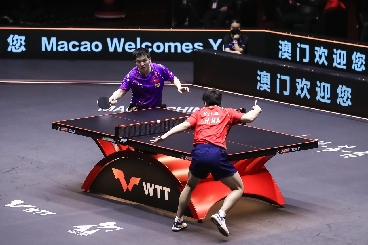 O Torneio de Campeões WTT Macau 2021 Estrelas da China, apresentado pelo Grupo Galaxy Entertainment, organizado pelo Instituto do Desporto e pela World Table Tennis (WTT) e co-organizado pela Associação Geral de Ping-Pong de Macau, procedeu hoje (dia 22) o 4.º dia de prova no Pavilhão Polidesportivo Tap Seac. Na prova final de duplas mistas, Xu Xin/Liu Shiwen venceram Fan Zhendong/Kuai Man e, nos singulares masculinos, Lin Gaoyuan, Xu Yingbin, Wang Chuqin e Xu Xin apuraram-se para as semi finais. Amanhã (dia 23) irá realizar os semi finais e finais dos singulares masculinos e femininos.