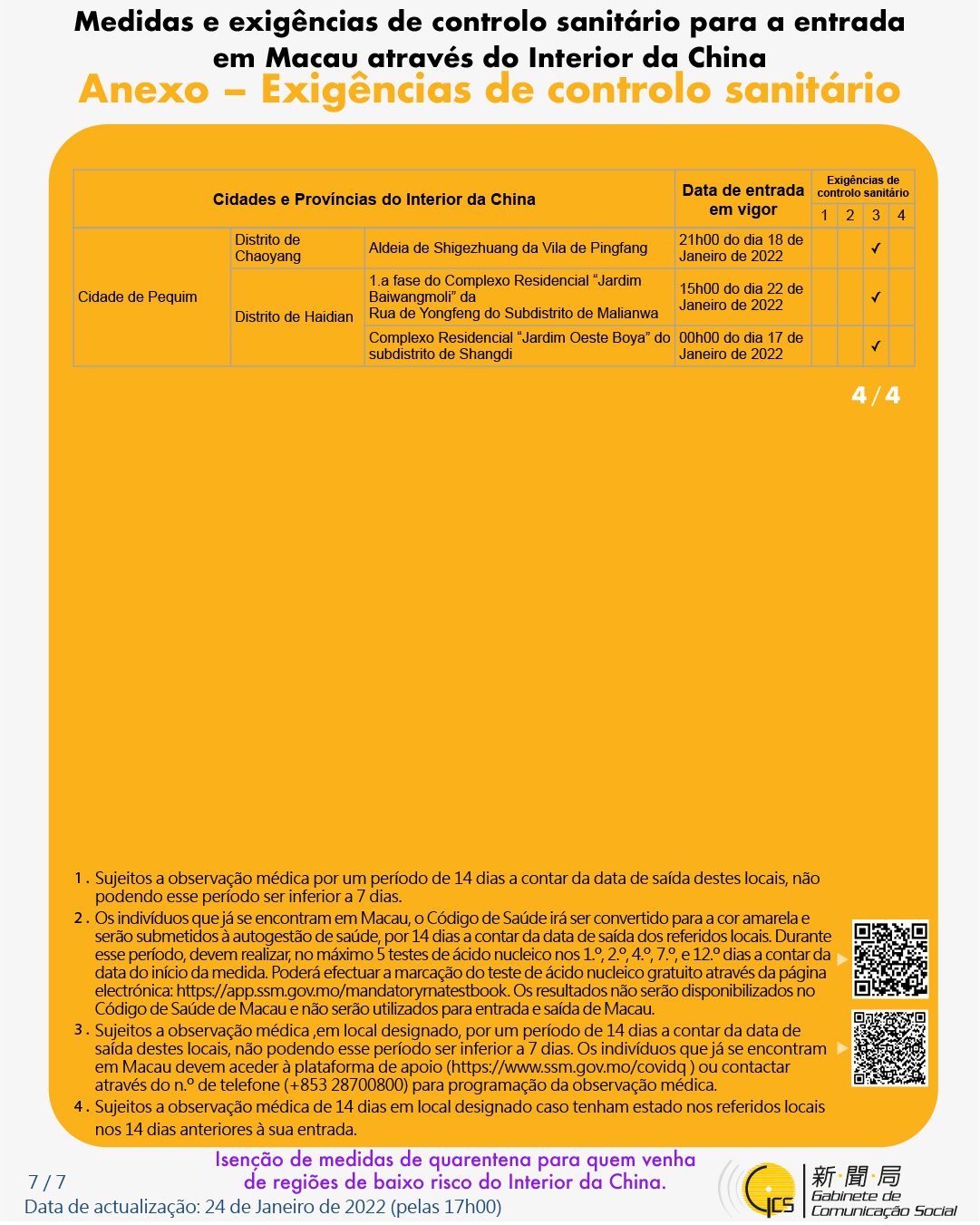 (Infografia)Medidas e exigências de controlo sanitário para a entrada em Macau de indivíduos de diferentes identidades, actualizadas no dia 24 de Janeiro de 2022