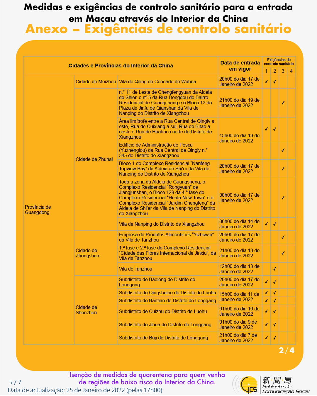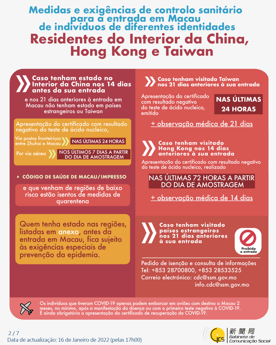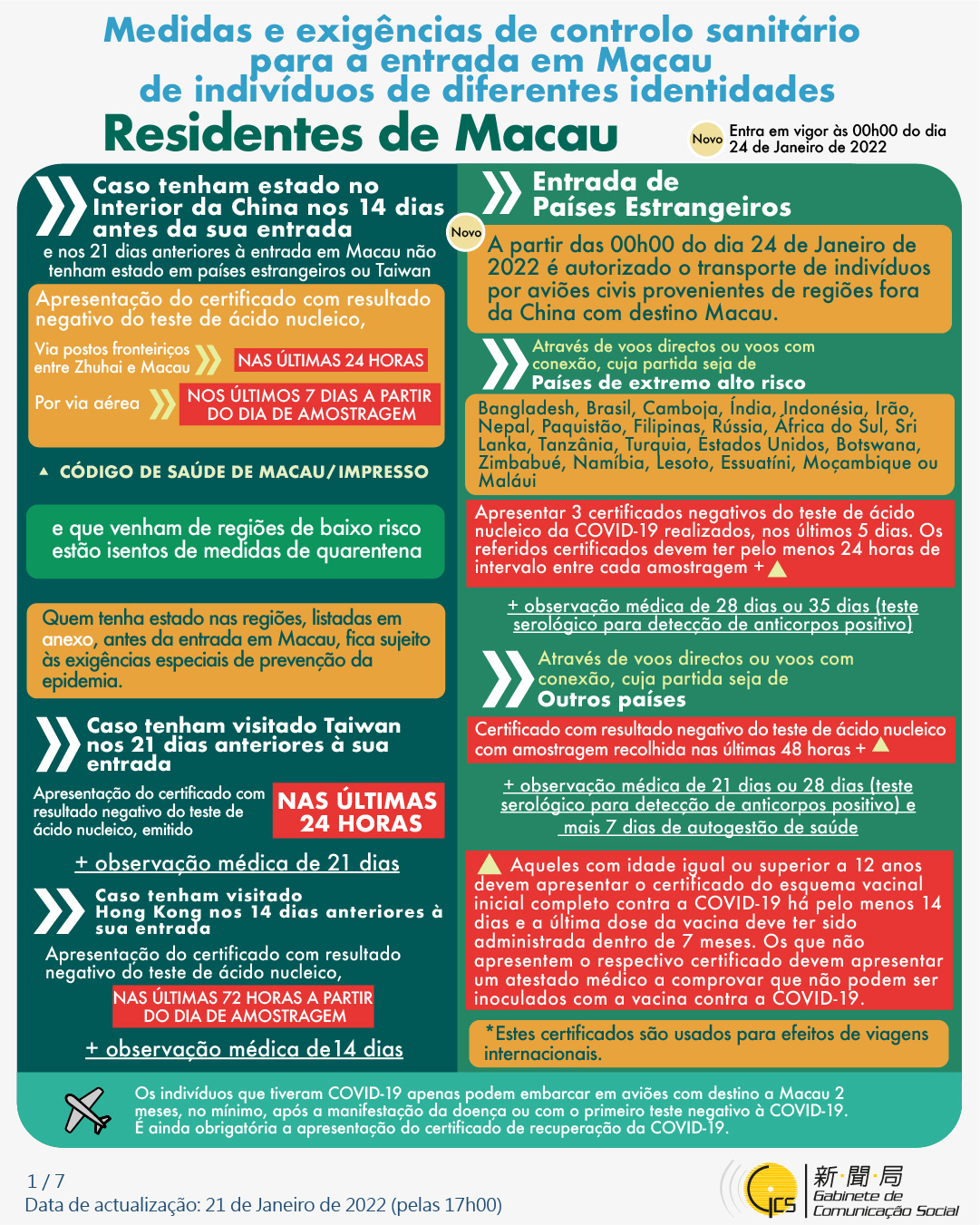 (Infografia)Medidas e exigências de controlo sanitário para a entrada em Macau de indivíduos de diferentes identidades, actualizadas no dia 25 de Janeiro de 2022