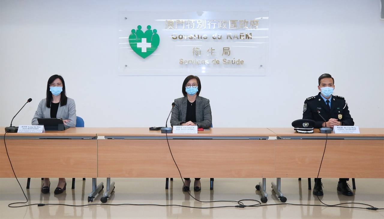 Estiveram presentes na conferência de imprensa: a Chefe do Departamento de Comunicação e Relações Externas da Direcção dos Serviços de Turismo, Dr.ª Lau Fong Chi; a Chefe da Divisão de Prevenção e Controlo de Doenças Transmissíveis do CDC dos Serviços de Saúde, Dr.ª Leong Iek Hou; o Chefe da Divisão de Operações e Comunicações do Corpo de Polícia de Segurança Pública, Dr. Ma Chio Hong.