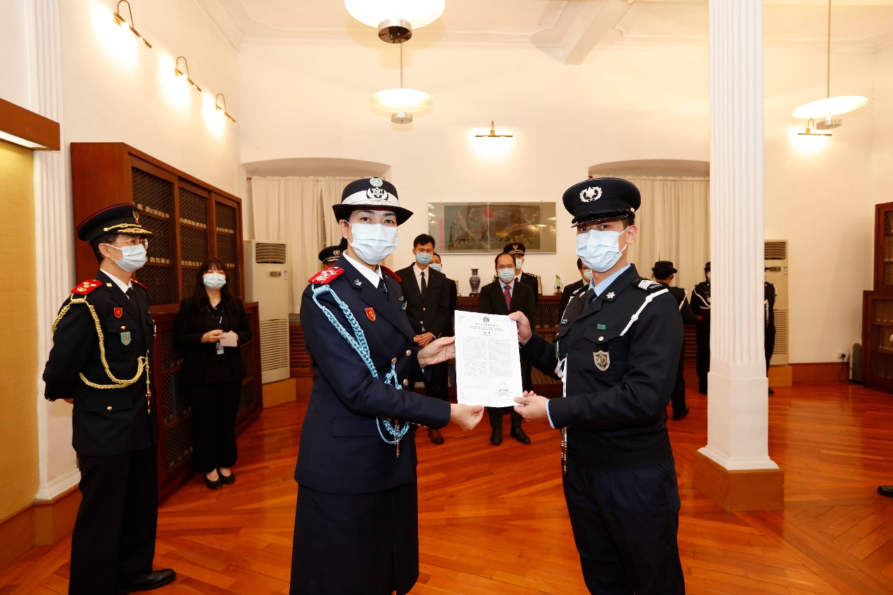Foram atribuídas insígnias de mérito comportamental e louvores aos 12 e 4 elementos, respectivamente. A Directora destes Serviços, Kok Fong Mei, manifestou o seu agradecimento aos colegas, em geral, pelos contínuos esforços envidados e pela coragem em enfrentar desafios e de ultrapassar as barreiras, no sentido de dar apoio, com todos os esforços, na garantia da segurança territorial.