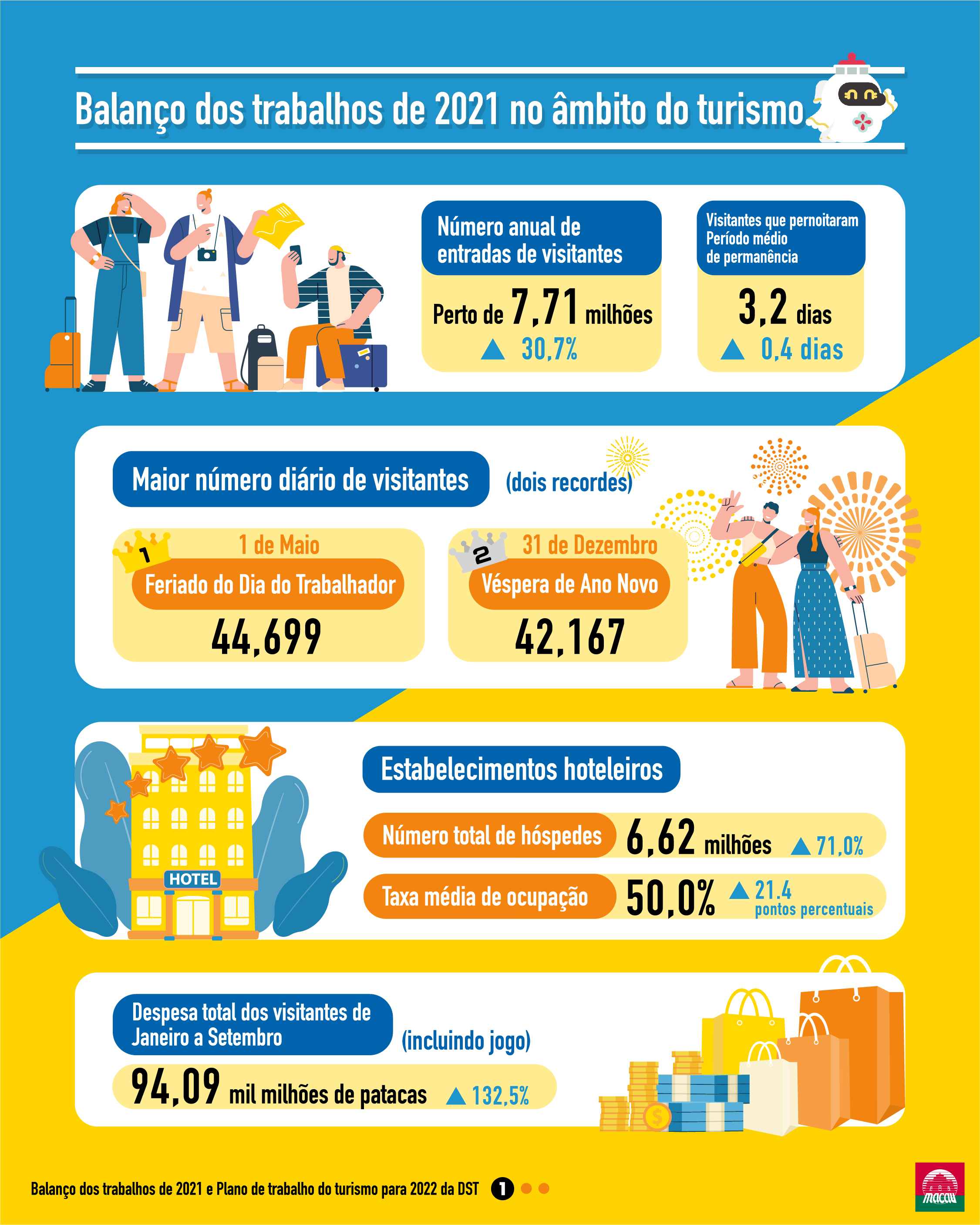 No ano passado, a Direcção dos Serviços de Turismo (DST) envidou todos os esforços na organização de uma série de eventos, lançamento de ofertas turísticas especiais e realização de ampla promoção online e offline para promover Macau como destino seguro e apropriado para visitar, com resultados positivos para a recuperação do turismo.