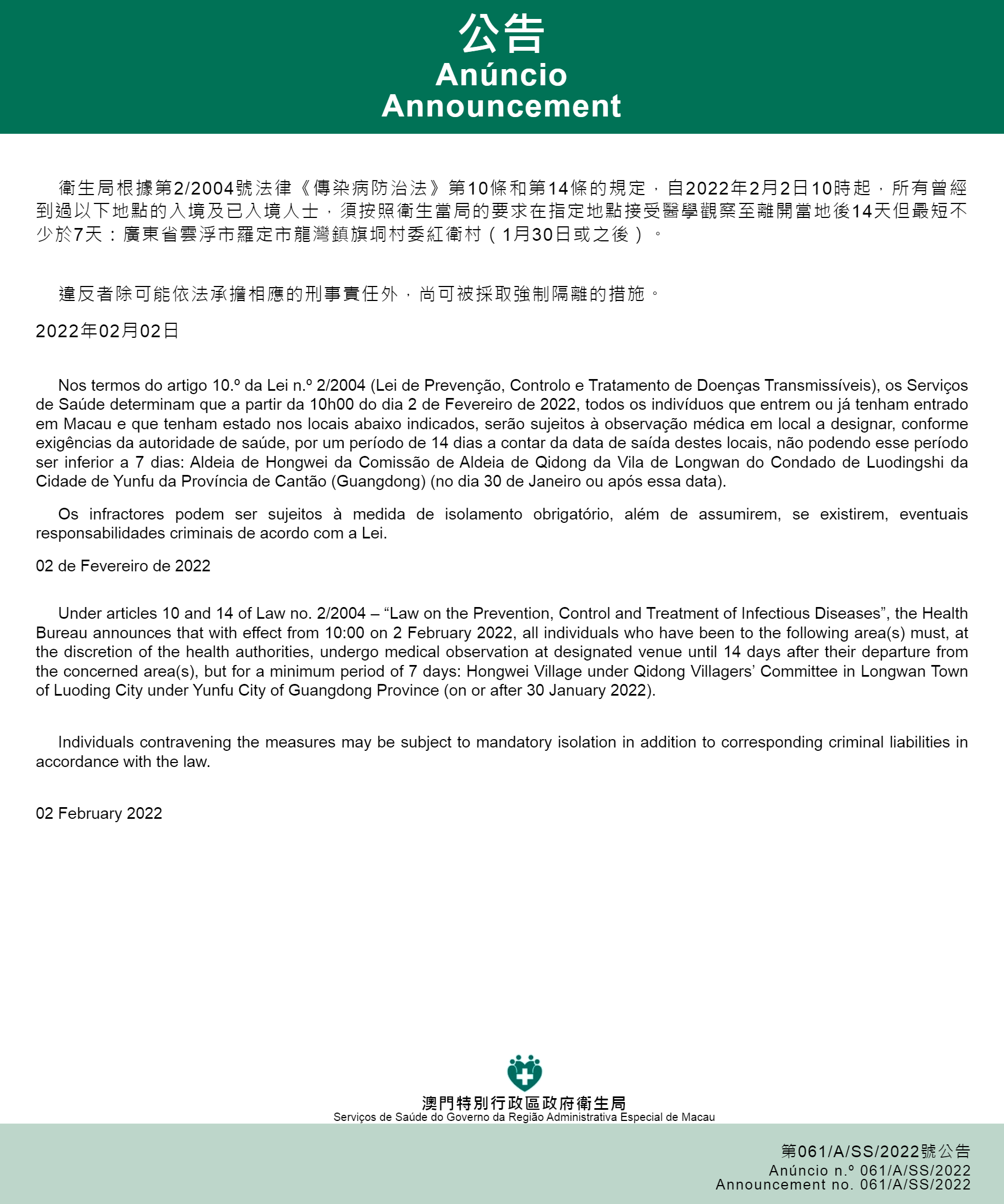 Distrito de Baoan (excluindo os indivíduos que passam pelo Distrito de Baoan para ida e volta do aeroporto ou terminal de passageiros) |