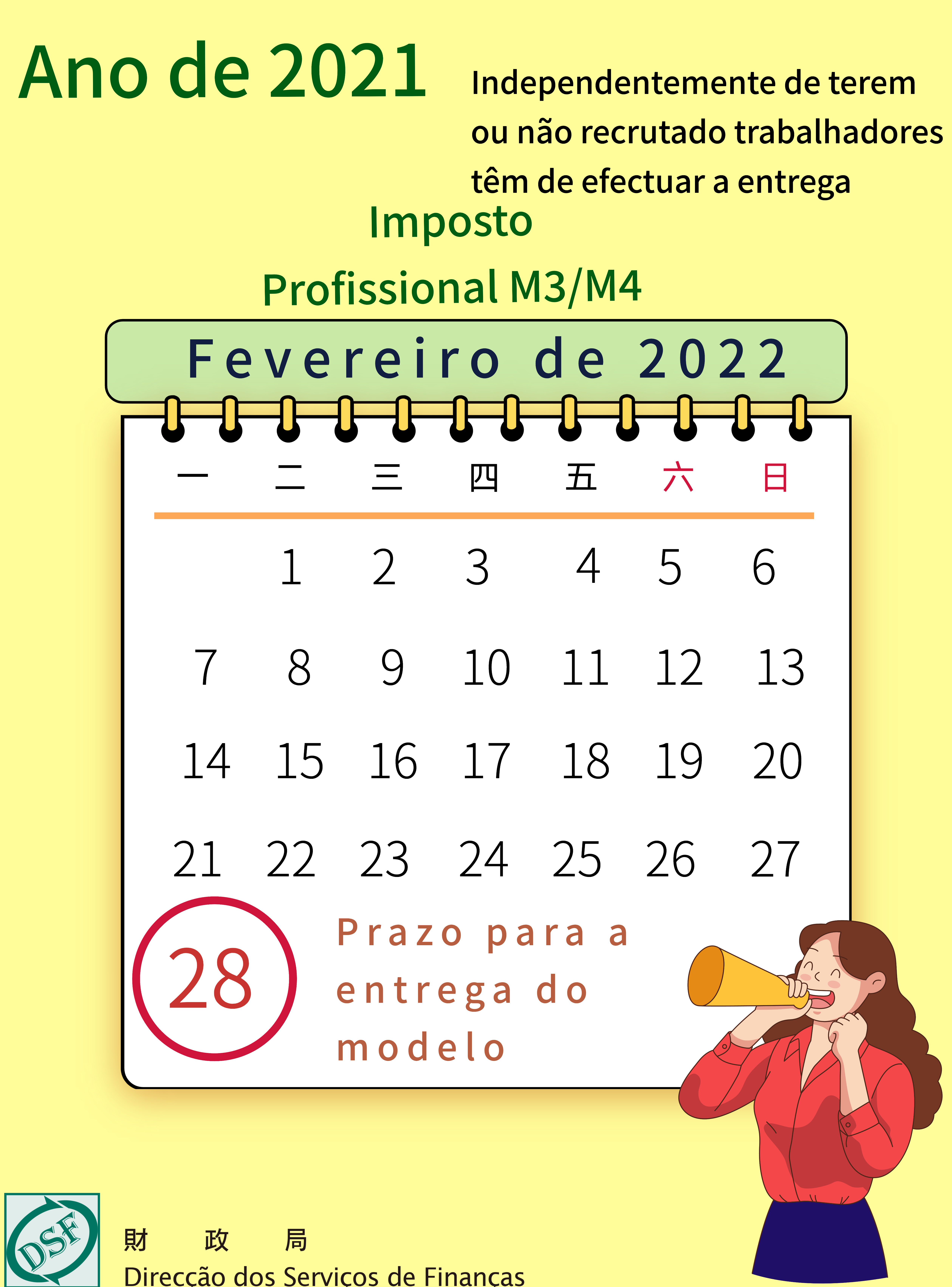 • O prazo para a entrega do modelo M3/M4 do Imposto Profissional do ano de 2021, vai até 28 de Fevereiro