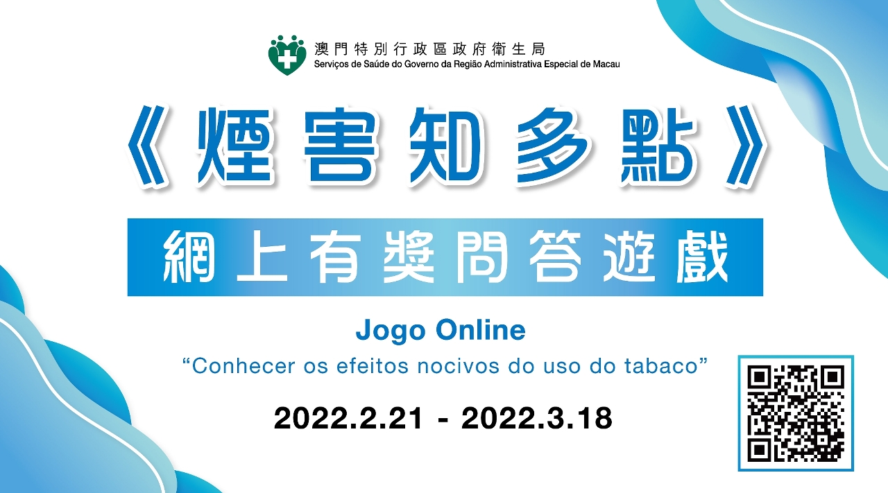 Para chamar a atenção do público para os riscos à saúde do tabagismo e leis relacionadas com o controlo e fiscalização do tabaco, os Serviços de Saúde estão a realizar online um jogo de perguntas “Conhecer os efeitos nocivos do uso do tabaco” de 21 de Fevereiro a 18 de Março de 2022.