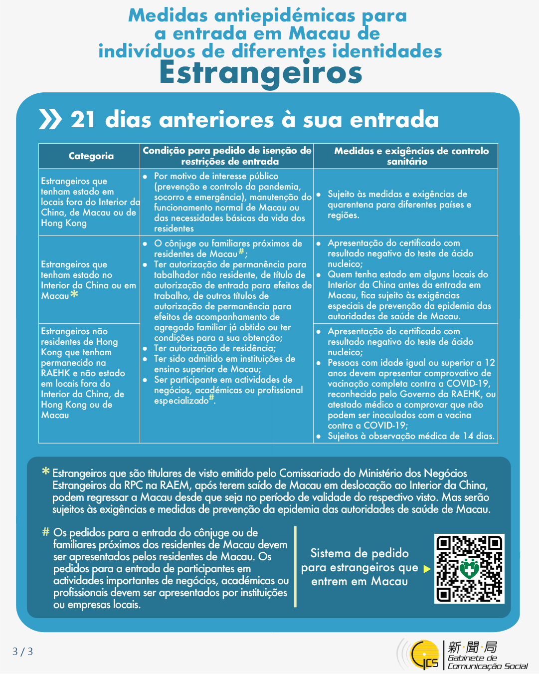 • Medidas antiepidémicas para a entrada em Macau de indivíduos de diferentes identidades