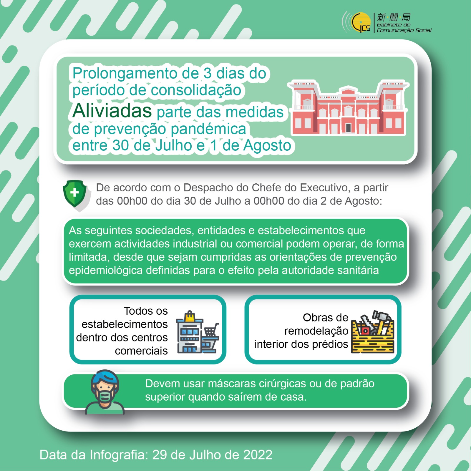 (Infografia) Prolongamento de 3 dias do período de consolidação - 30 de Julho a 1 de Agosto