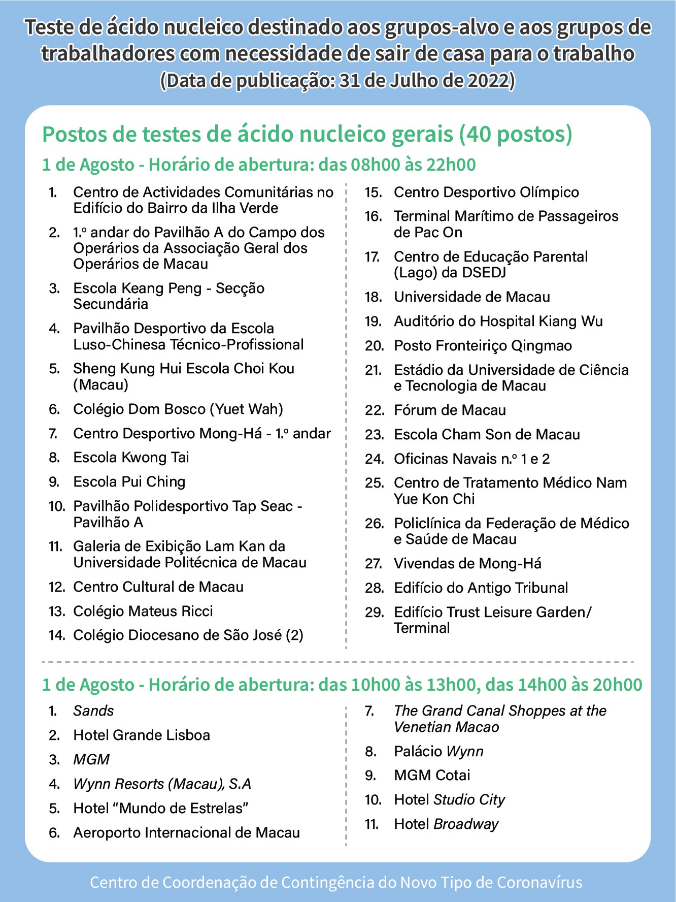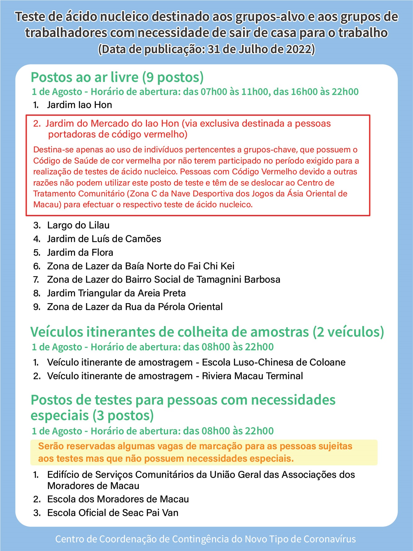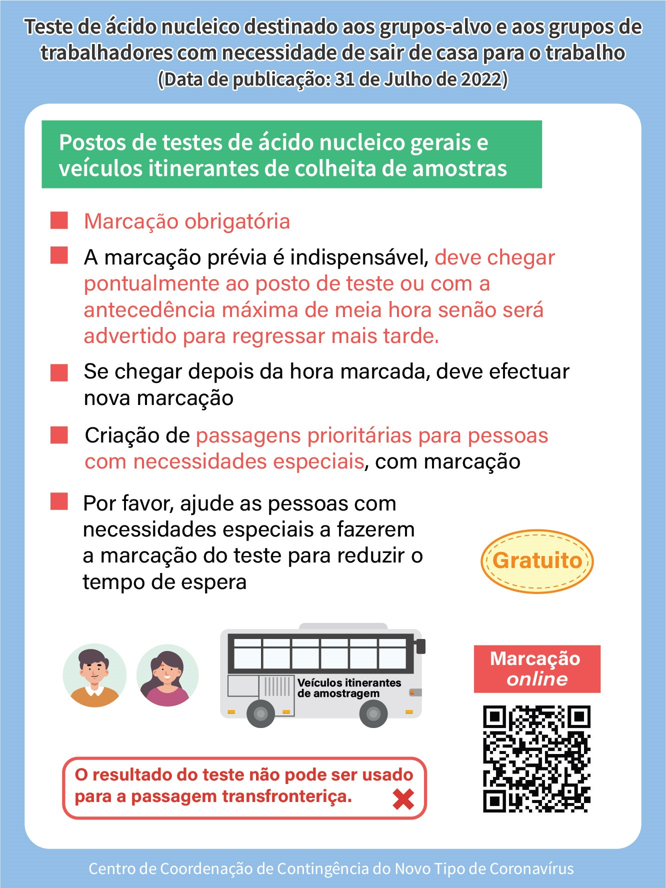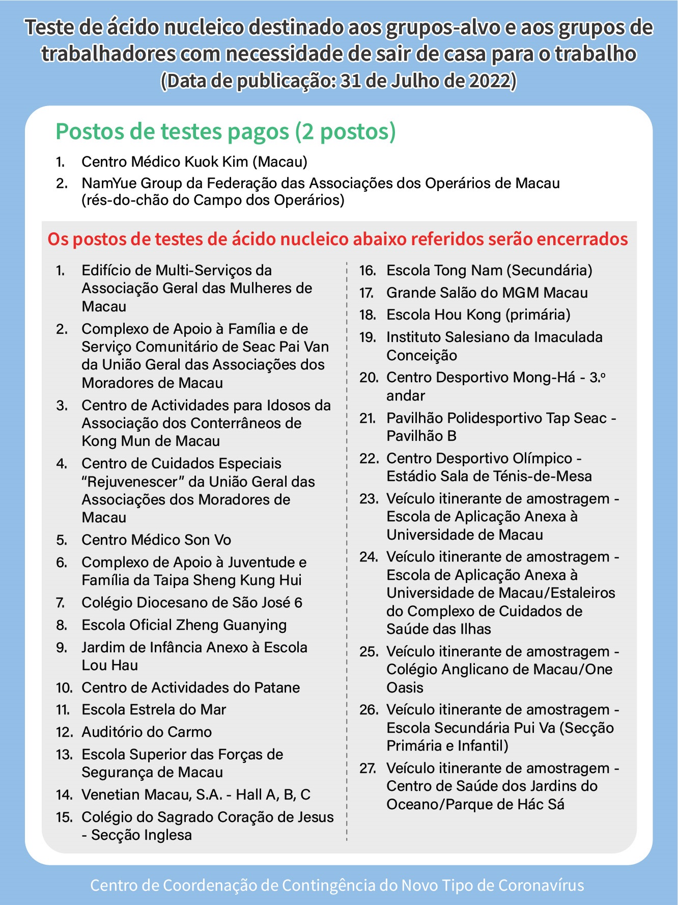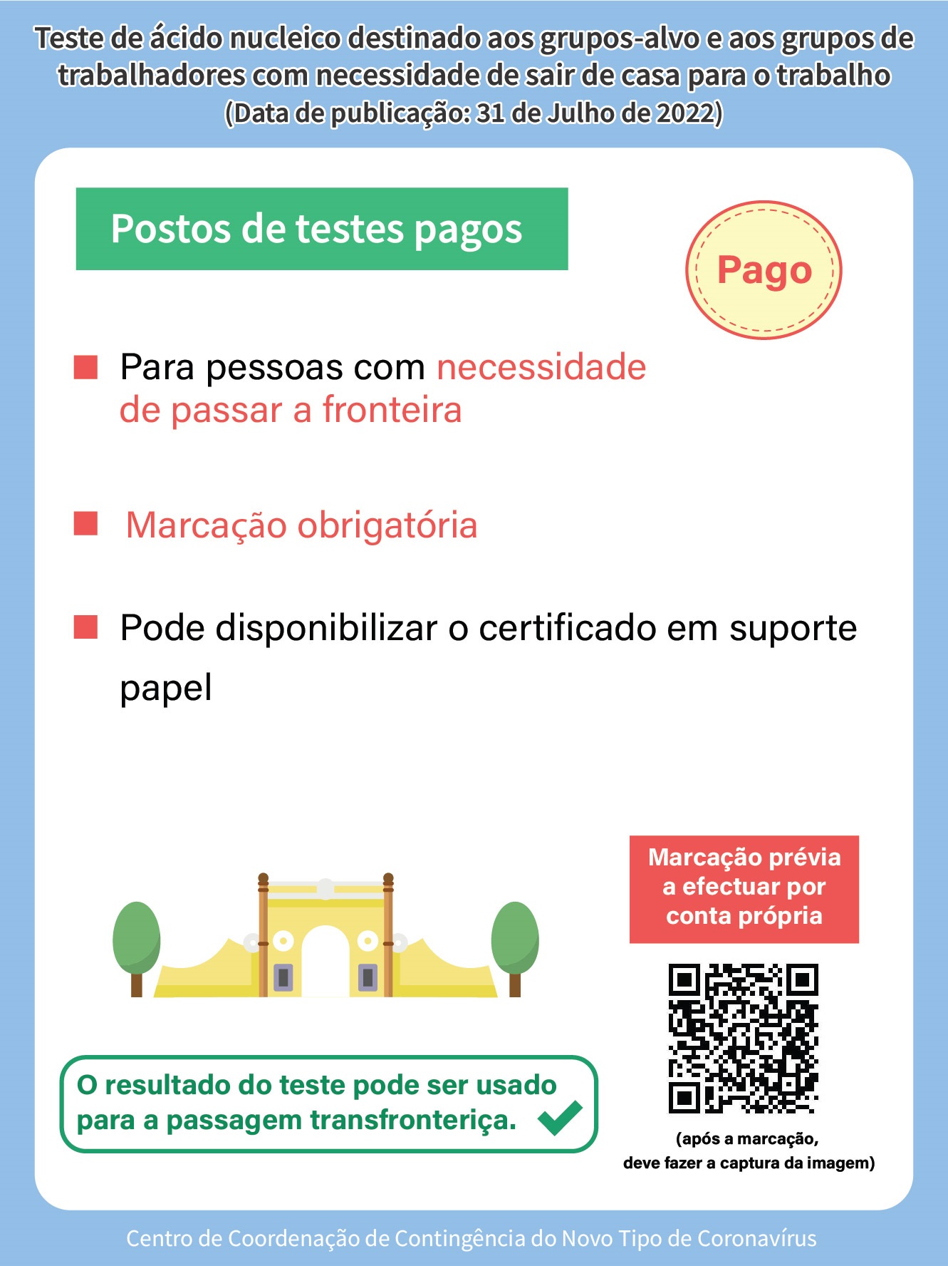| Postos de Testes Pagos (Marcação obrigatória, resultado exibido no código de saúde e fornecido em forma de papel) |
