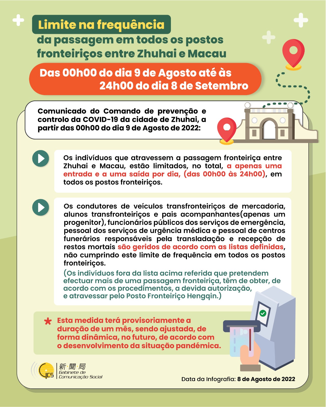 (Infografia) Limite na frequência da passagem em todos os postos fronteiriços entre Zhuhai e Macau