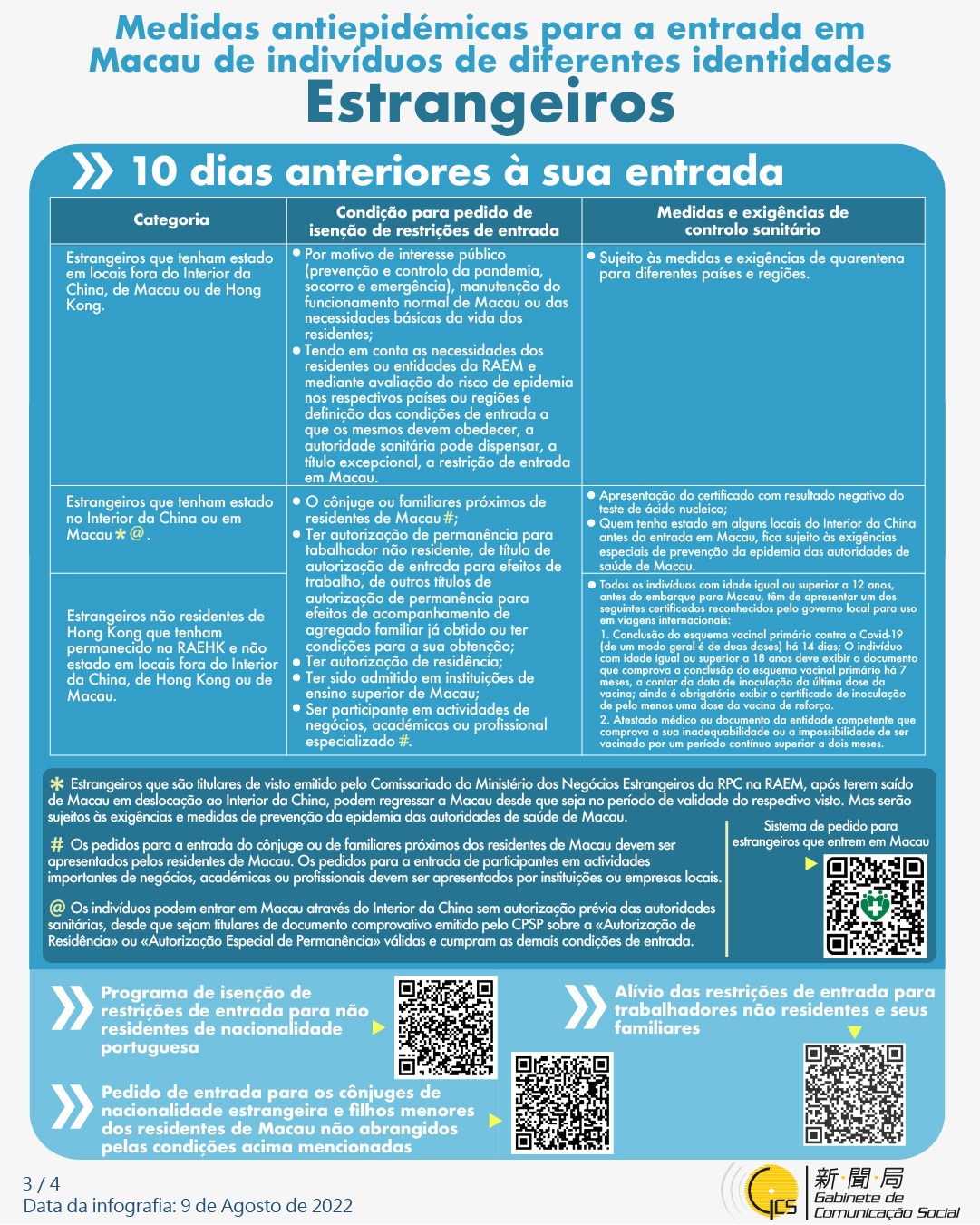 Medidas antiepidémicas para a entrada em Macau de indivíduos de diferentes identidades