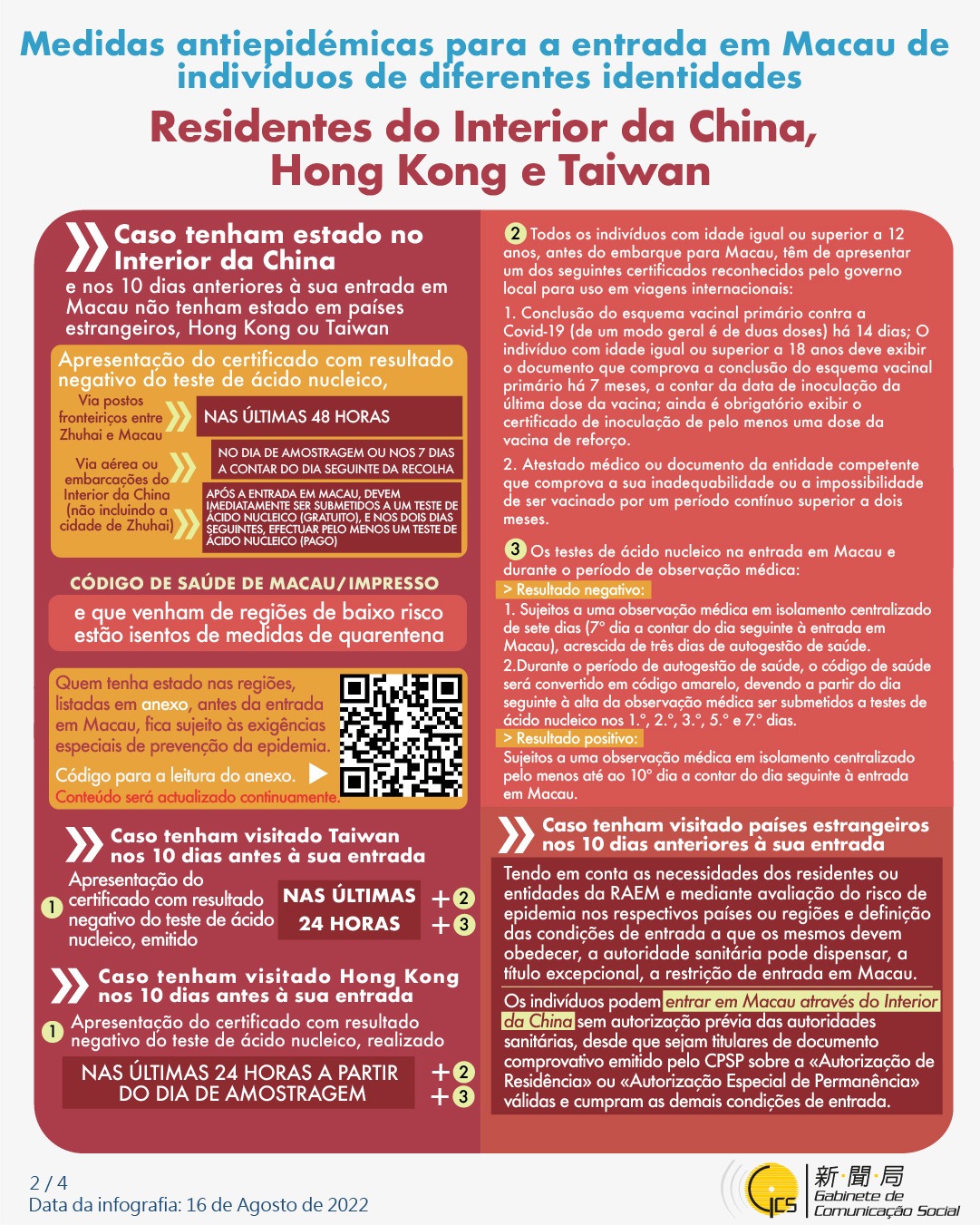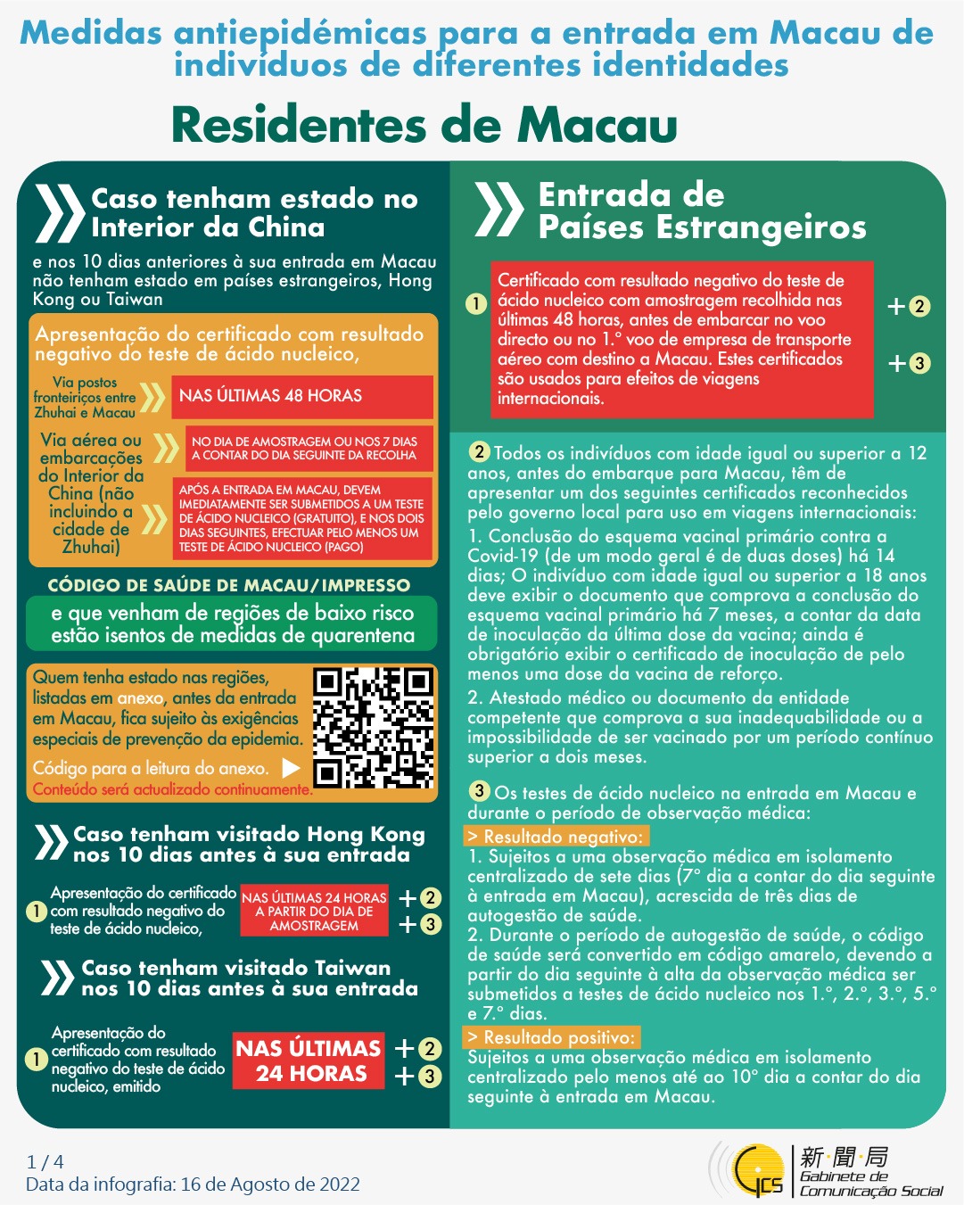(Infografia) Medidas antiepidémicas para a entrada em Macau de indivíduos de diferentes identidades, actualizadas no dia 16 de Agosto de 2022