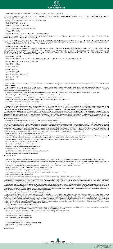 O Centro de Coordenação e Contingência apela a todos os residentes para prestarem atenção ao desenvolvimento da epidemia nos locais onde se encontram ao viajar para o exterior. E ainda, é necessário insistir no uso de máscaras, implementar de forma rigorosa várias medidas de prevenção de epidemia, manter distância social e evitar aglomerações de multidões.