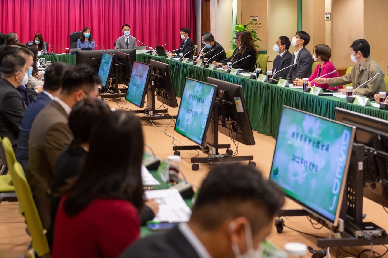 Realizou-se a 1.a reunião plenária de 2022 do Conselho de Educação, no dia 9 de Novembro, no Salão de Conferências Confúcio da Direcção dos Serviços de Educação e de Desenvolvimento da Juventude (DSEDJ). Esta reunião foi a primeira reunião plenária do Conselho de Educação, presidida pela sua presidente, a Secretária para os Assuntos Sociais e Cultura, Ao Ieong U. A ordem de trabalhos incluiu a votação do “Regulamento Interno do Conselho de Educação”, uma breve apresentação da situação actual do planeamento de carreira e do planeamento dos trabalhos desenvolvidos pela DSEDJ e a apresentação dos trabalhos de coordenação da promoção de ensino superior de Macau. Os membros apresentaram as suas opiniões e sugestões sobre os respectivos assuntos.