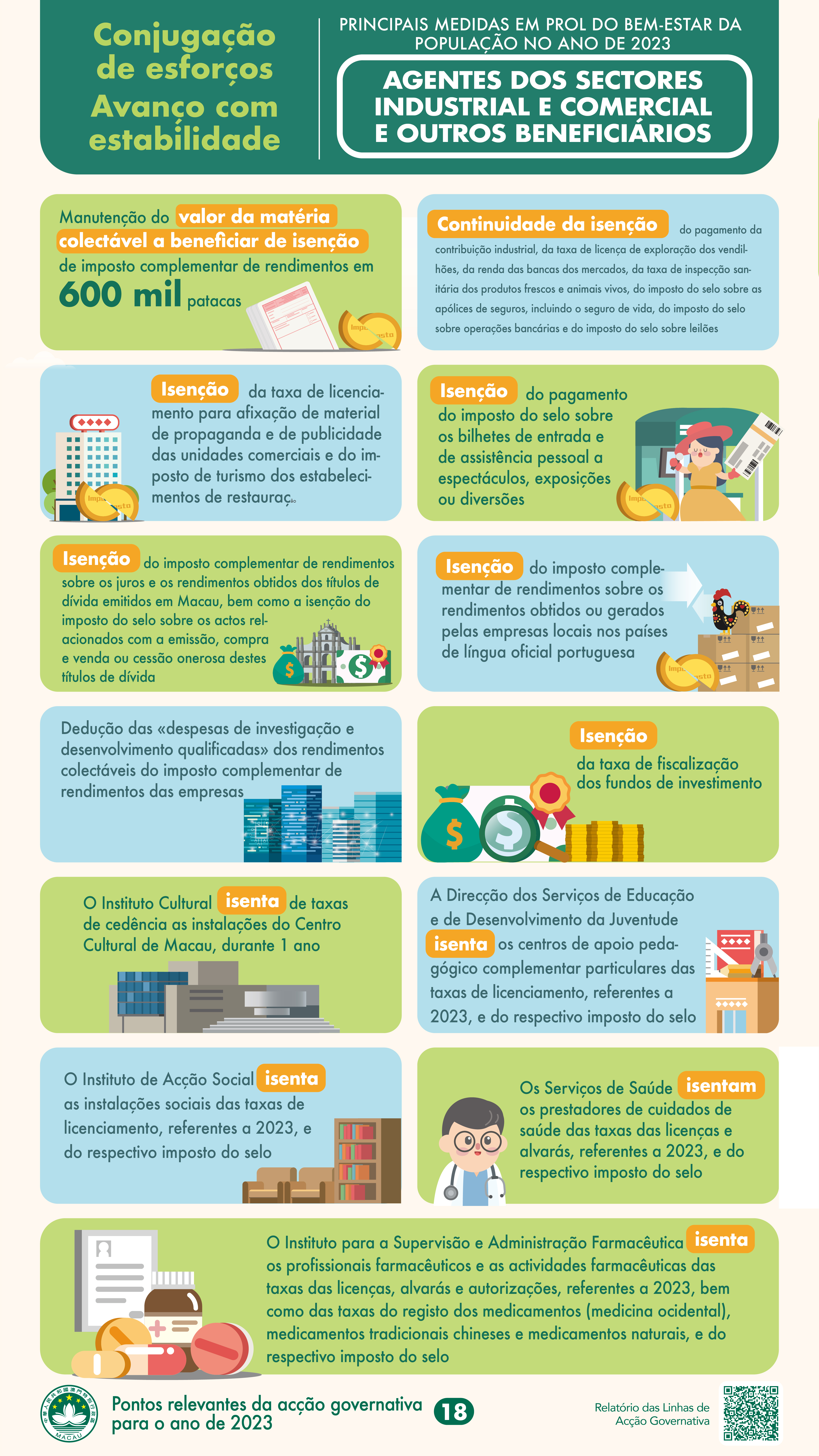 • Principais medidas em prol do bem-estar da população no ano de 2023: Agentes dos sectores industrial e comercial e outros beneficiários