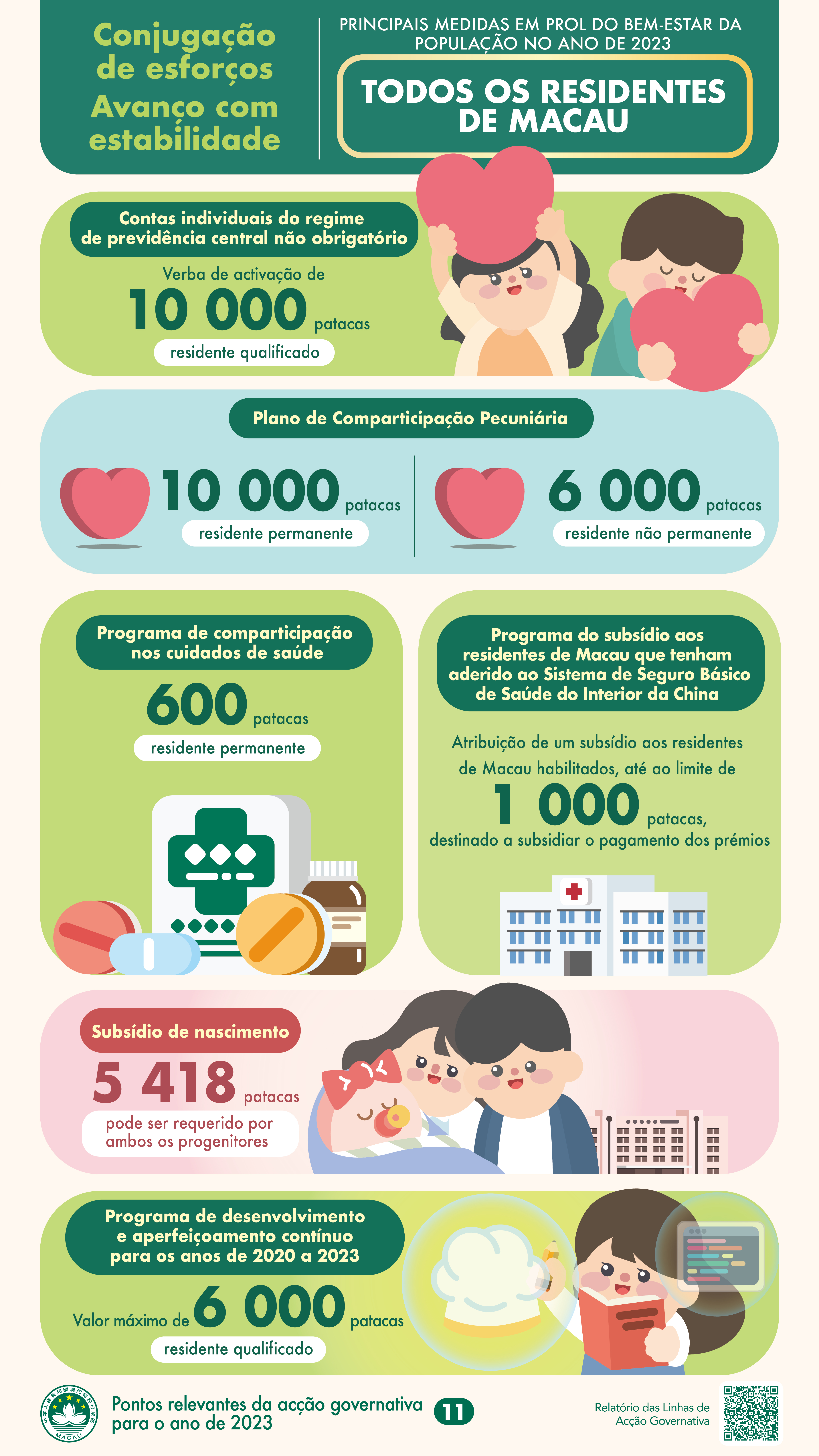 • Principais medidas em prol do bem-estar da população no ano de 2023: Todos os residentes de Macau(2)