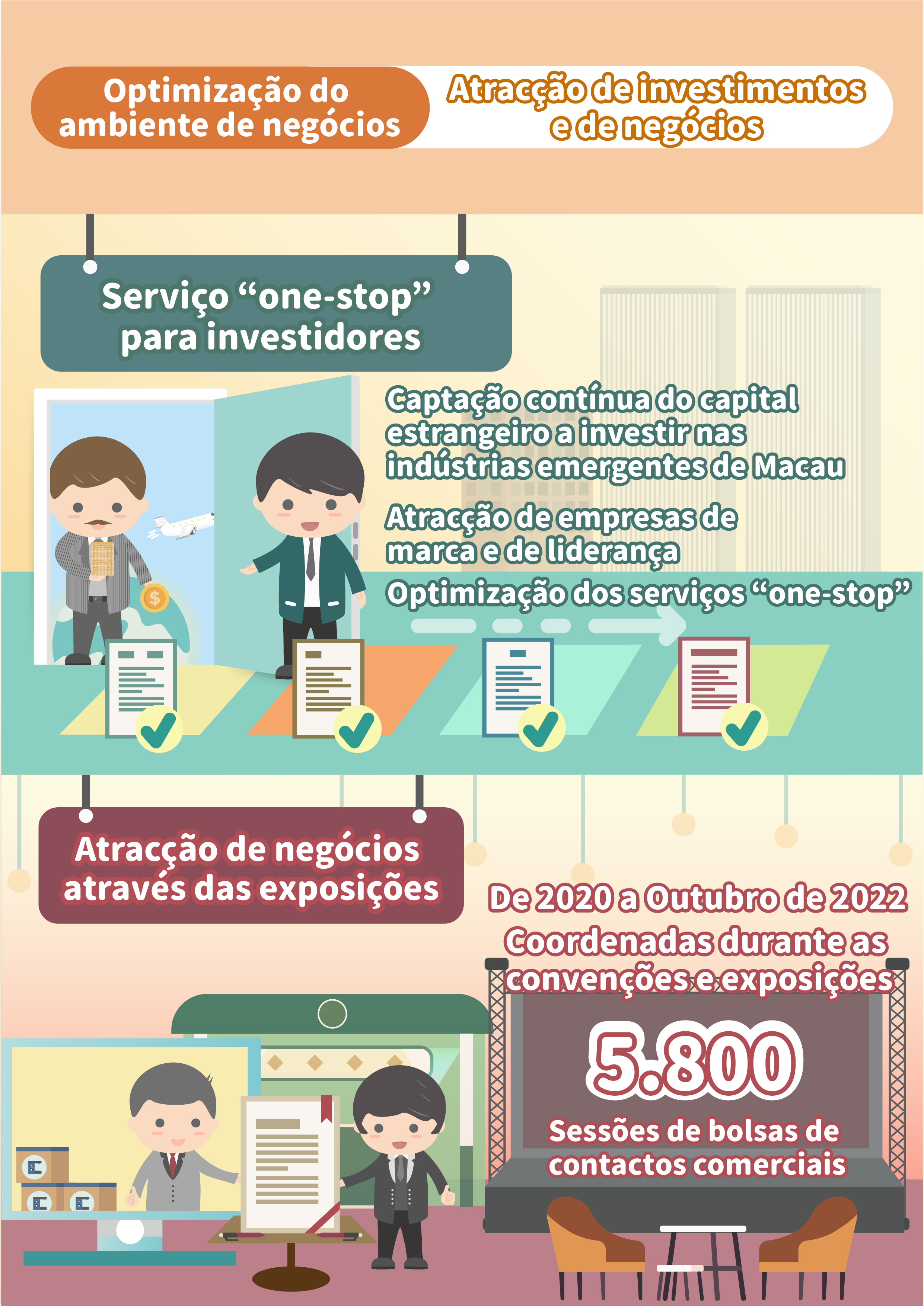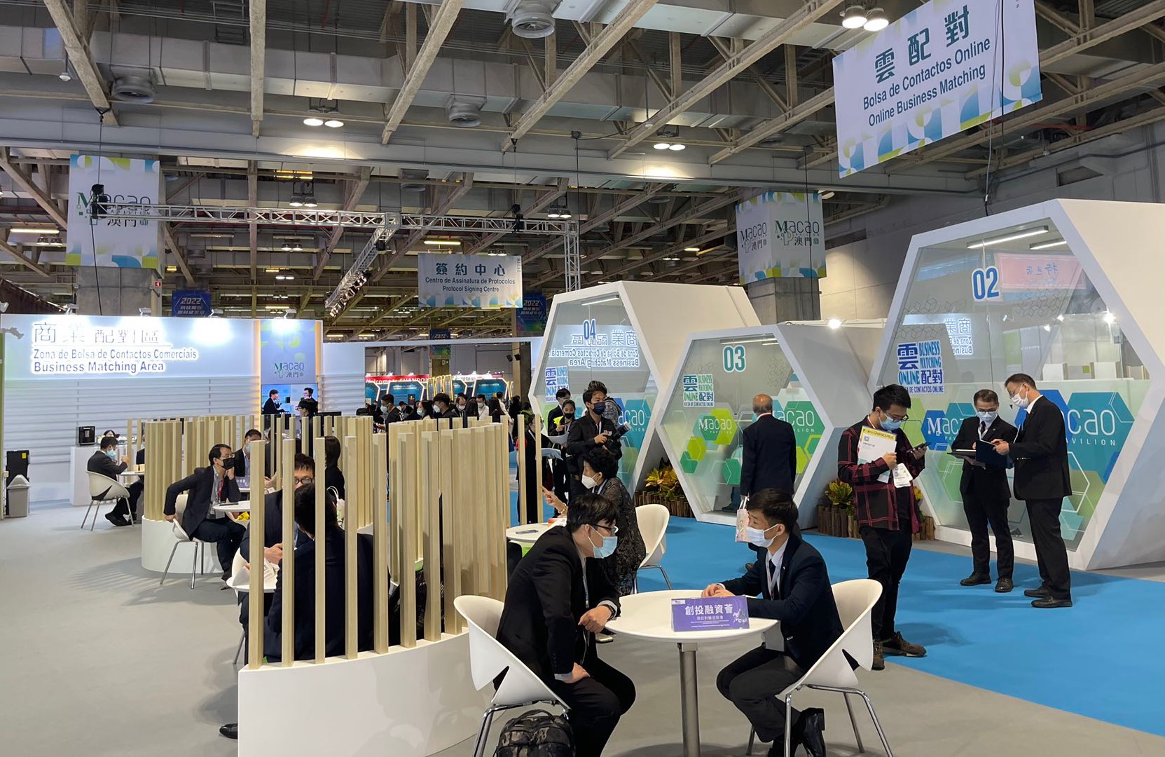 As actividades de convenções e exposições organizadas e coordenadas pelo IPIM, através da plataforma criada por essas mesmas convenções e exposições que reúne empresas de diferentes cadeias industriais de vários sectores, criam condições e oportunidades de encontro e contacto comercial para as PMEs locais. De início de 2020 a Outubro de 2022, o IPIM organizou mais de 5.800 bolsas de contactos durante o período de realização das convenções e exposições, promovendo assim a cooperação bilateral de todas as partes no comércio e investimento.