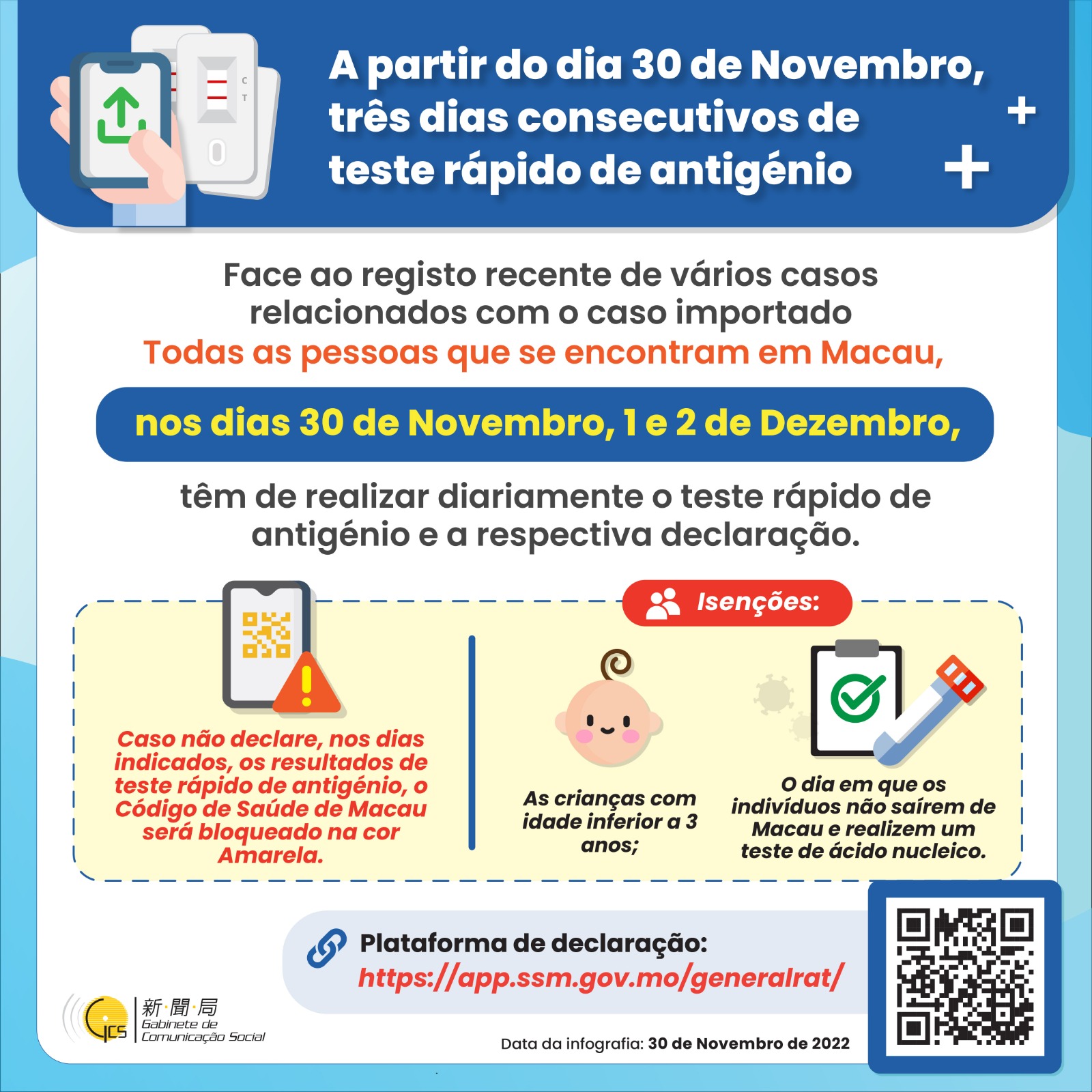 【Infografia】A partir do dia 30 de Novembro, 3 dias consecutivos de teste rápido de antigénio
