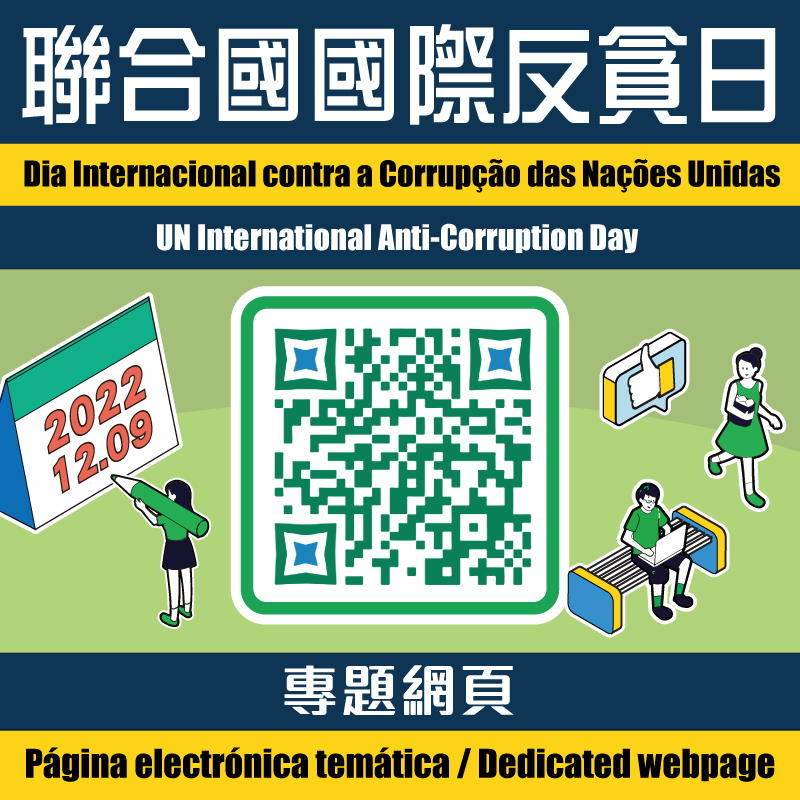 O Dia Internacional contra a Corrupção das Nações Unidas assinala-se a 9 de Dezembro. O Comissariado contra a Corrupção (CCAC) lançou, recentemente, uma série de actividades promocionais, nomeadamente a criação de uma página electrónica temática, a recolha de vídeos dobrados criativos, jogos de perguntas e respostas no WeChat, palestras temáticas nas comunidades e a produção de materiais para a realização de acções de divulgação na comunicação social, entre outras. Através da combinação de meios online e offline, pretende-se aprofundar os conhecimentos da população sobre a Convenção das Nações Unidas contra a Corrupção e chamar a atenção e enaltecer a importância da sociedade para o problema da corrupção.