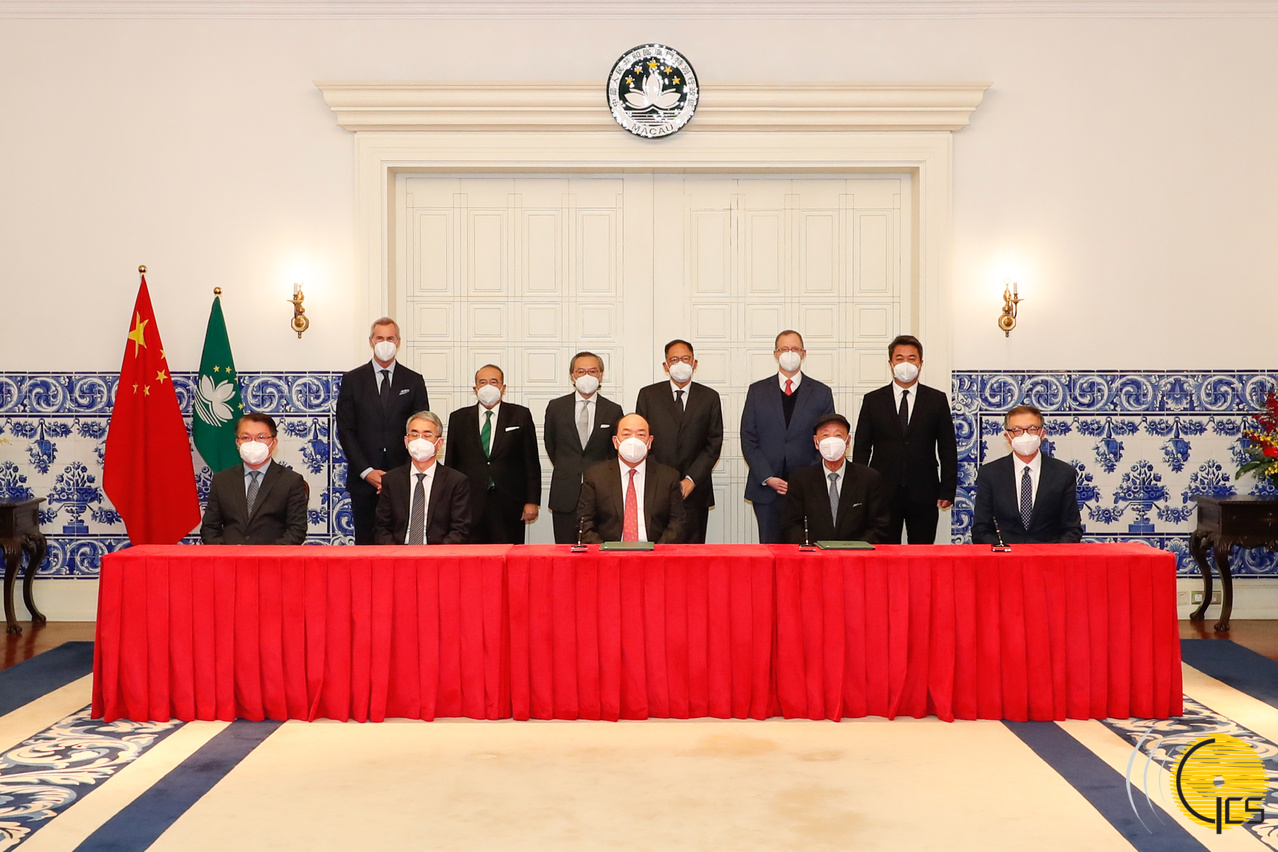 O Chefe do Executivo, em nome da RAEM, assinou esta tarde, na Sede do Governo, com os representantes das seis empresas adjudicatárias, os respectivos contratos de concessão para a exploração de jogos de fortuna ou azar em casino na RAEM, que entrará em vigor, a partir do dia 1 de Janeiro de 2023, cujo prazo de concessão é de dez anos.