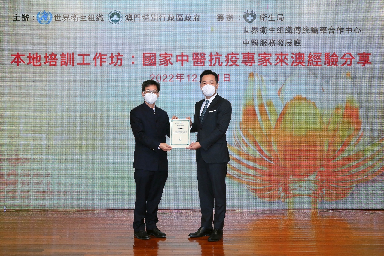 O Governo da Região Administrativa Especial de Macau, em conjunto com a Organização Mundial da Saúde, organizaram recentemente o workshop de formação local “Deslocação a Macau de especialistas nacionais de Medicina Tradicional Chinesa para partilha de experiências na área de prevenção e controlo da epidemia”, tendo convidado os membros do grupo de especialistas nacionais, o director do Hospital de MTC da Província de Guangdong, o professor Dr. Zhang Zhongde e o director do Departamento de Medicina Intensiva do mesmo Hospital de MTC, o professor Dr. Zou Xu, para efeitos de partilha das experiências acumuladas no combate à epidemia, assim como de intercâmbio académico.