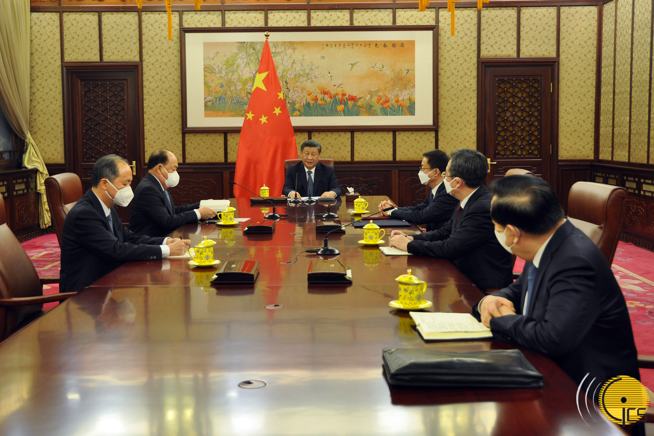 • Presidente, Xi Jinping, com o Chefe do Executivo da Região Administrativa Especial de Macau, Ho Iat Seng, que se encontra em Pequim em missão oficial.