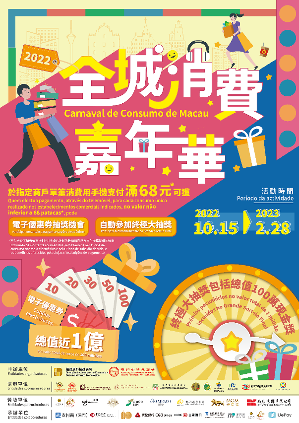 Para promover a recuperação económica após epidemia e dinamizar o ambiente do mercado, a Direcção dos Serviços de Economia e Desenvolvimento Tecnológico (DSEDT) e a Associação Comercial de Macau organizaram, em conjunto, uma grande actividade de promoção do consumo denominada Carnaval de Consumo de Macau 2022, que decorre entre 15 de Outubro de 2022 e 28 de Fevereiro de 2023, com a duração de mais de 4 meses.