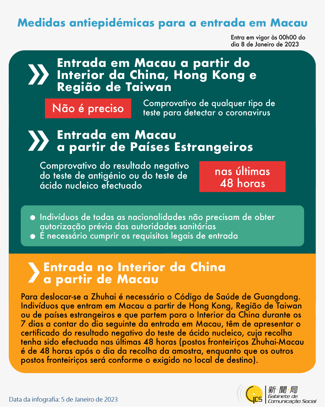 (Infografia) Medidas antiepidémicas para a entrada em Macau (5 de Janeiro de 2023).