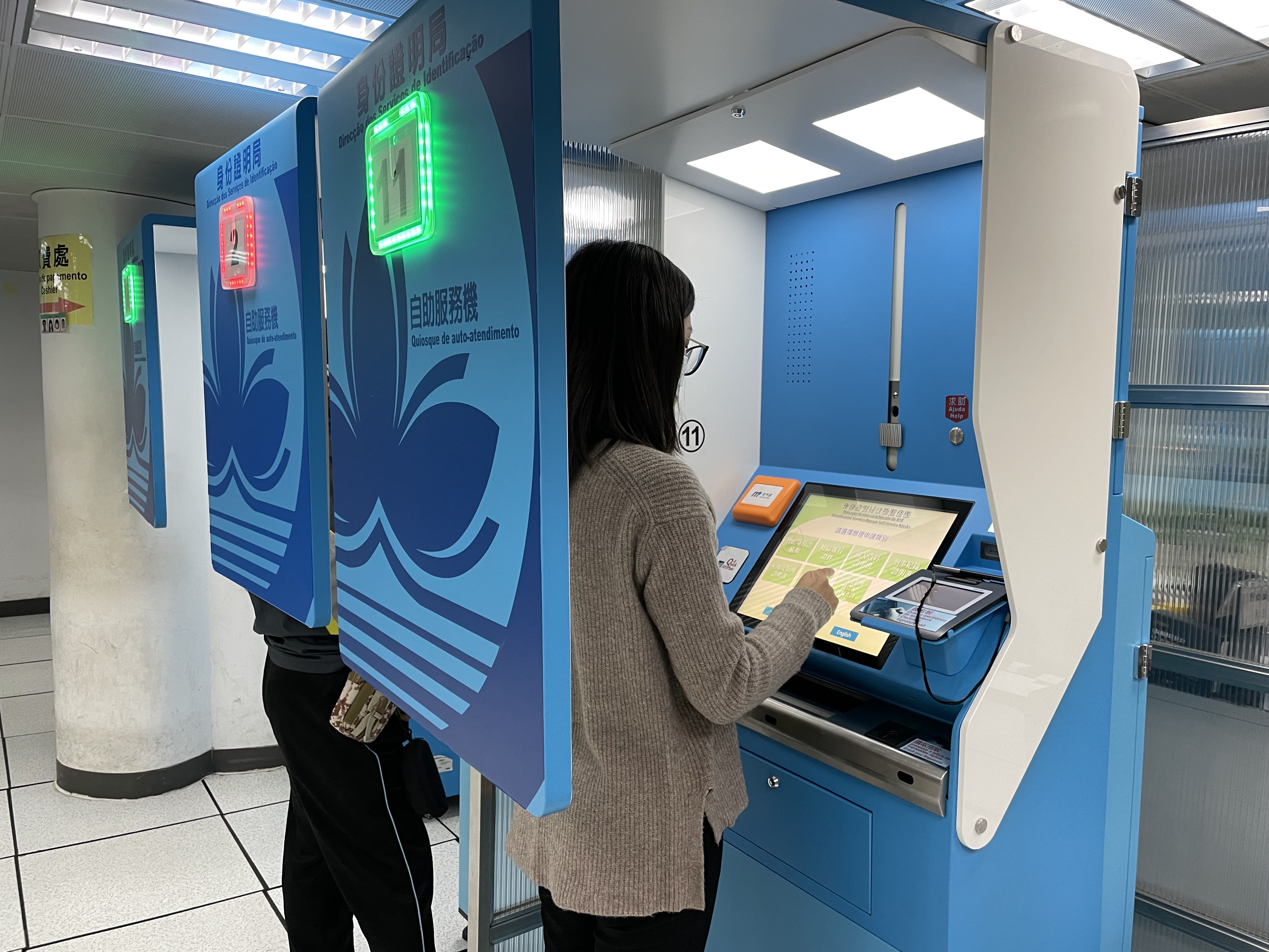 Os titulares de bilhete de identidade de residente permanente da RAEM, maiores de 18 anos de idade, dado que têm de ser medida a altura, podem utilizar os quiosques de auto-atendimento para tratar das formalidades da renovação durante as horas de expediente. Os quiosques de auto-atendimento encontram-se nos três postos de atendimento da DSI, nomeadamente, a Direcção dos Serviços de Identificação, sita no 1.º andar do Edifício China Plaza na Avenida da Praia Grande, os serviços de atendimento da DSI na Área dos Serviços de Identificação do 2.º andar do Centro de Serviços da RAEM (Areia Preta) e na Área dos Serviços de Identificação do 3.º andar do Centro de Serviços da RAEM das Ilhas.
