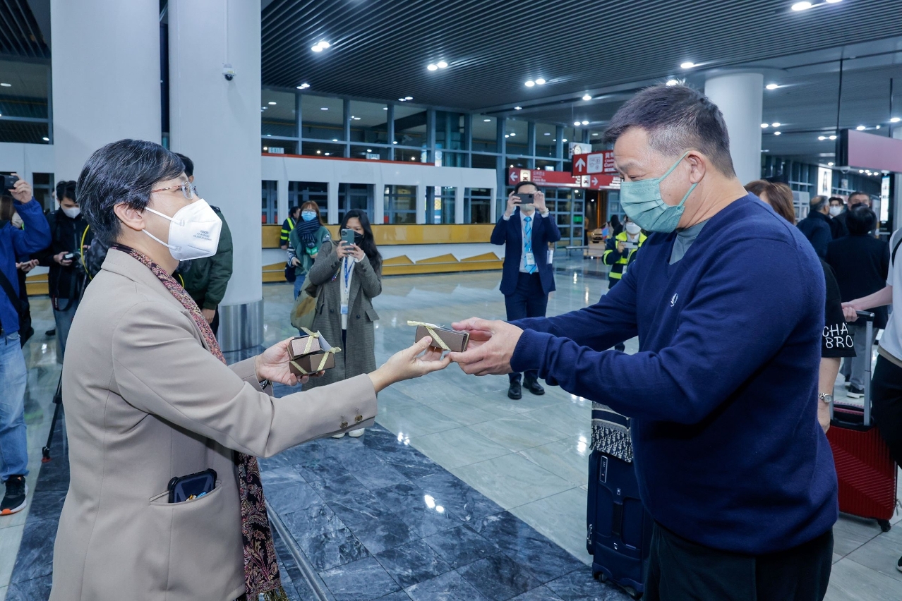 Com o regresso da normalização das passagens fronteiriças, o sector da aviação civil tem vindo a retomar gradualmente os serviços aéreos internacionais de ligação a Macau. O primeiro voo pós-pandemia da AirAsia, AK186, chegou a Macau esta noite (dia 14), vindo de Kuala Lumpur, Malásia. A directora da DST, Maria Helena de Senna Fernandes, esteve presente na cerimónia de boas-vindas aos visitantes que chegaram a Macau. Por calhar no Dia dos Namorados (14 de Fevereiro), a DST organizou a visita da mascote do turismo de Macau “Mak Mak” ao local, para distribuir caixas de chocolates artesanais aos visitantes que chegaram a Macau e desejar felicidades.
